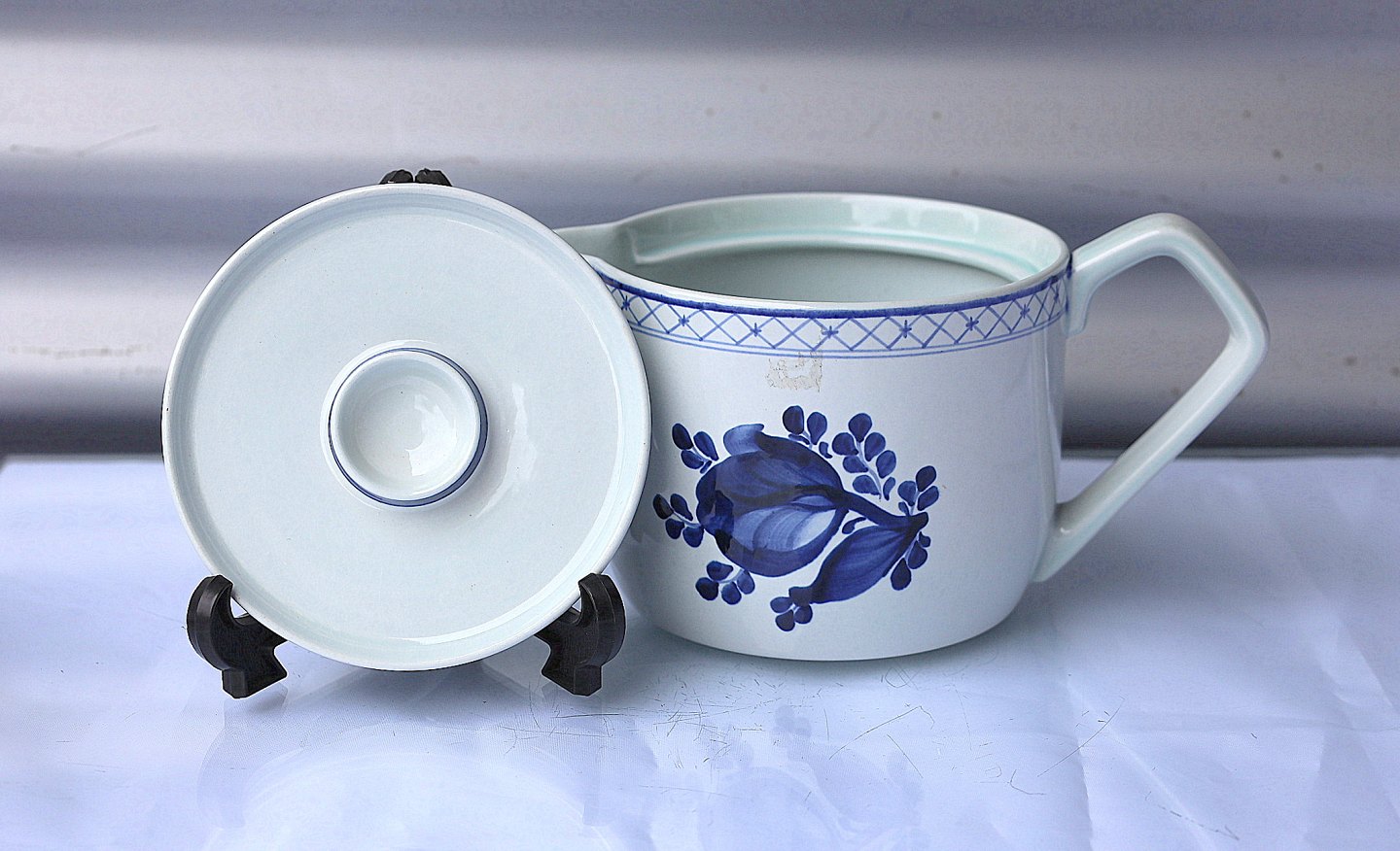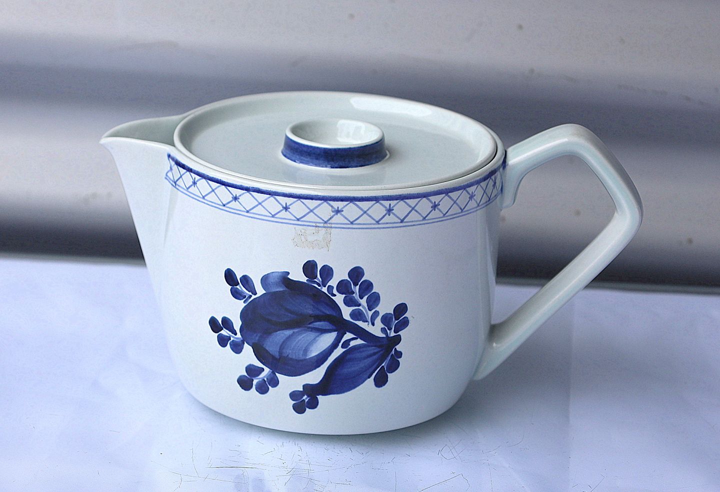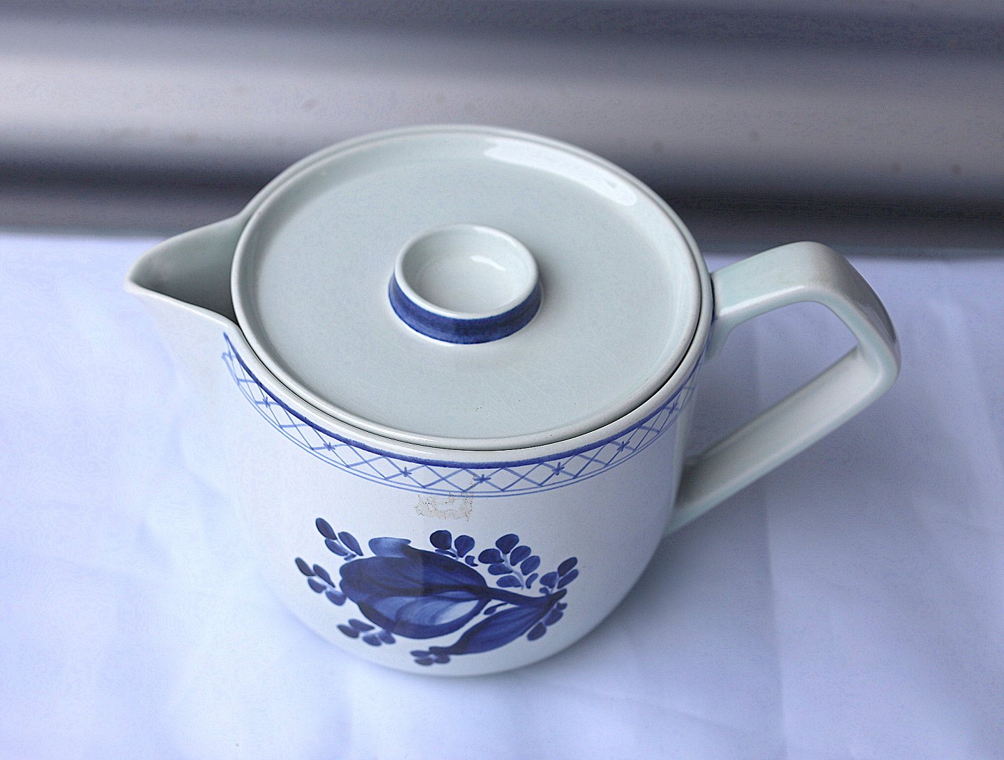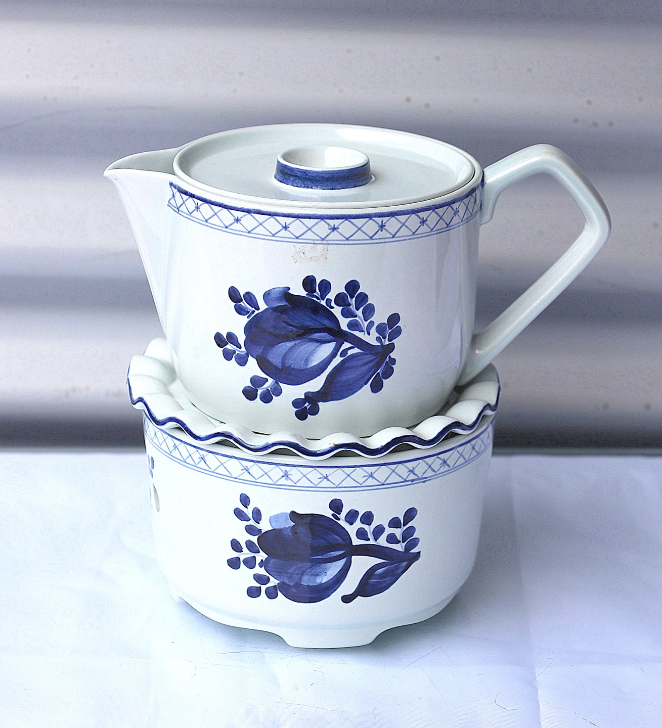 Aluminia Tranquebar, tekande nr. 11/2828. Tekande med blå dekoration og tekanden er af fajance.