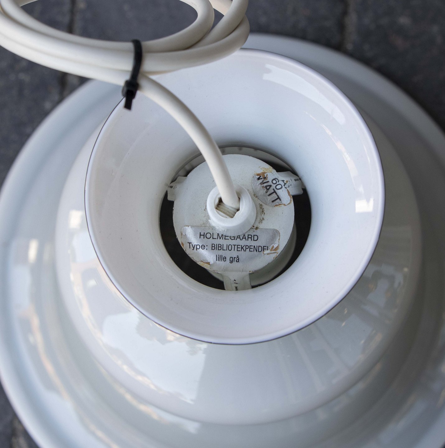 Loftslampe med skærm i lysegrå glas med opalhvid inderside