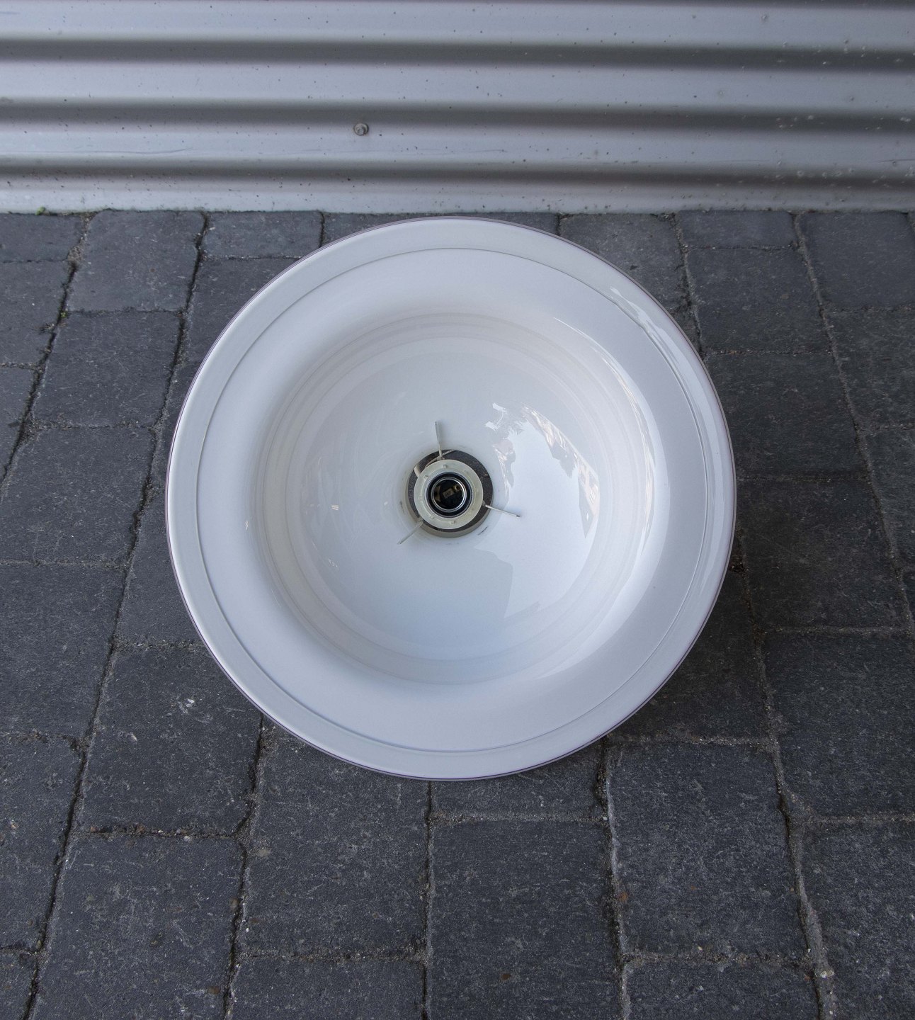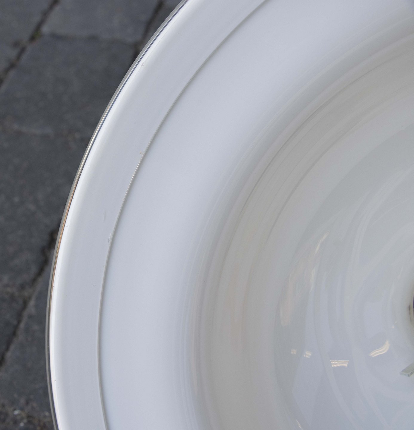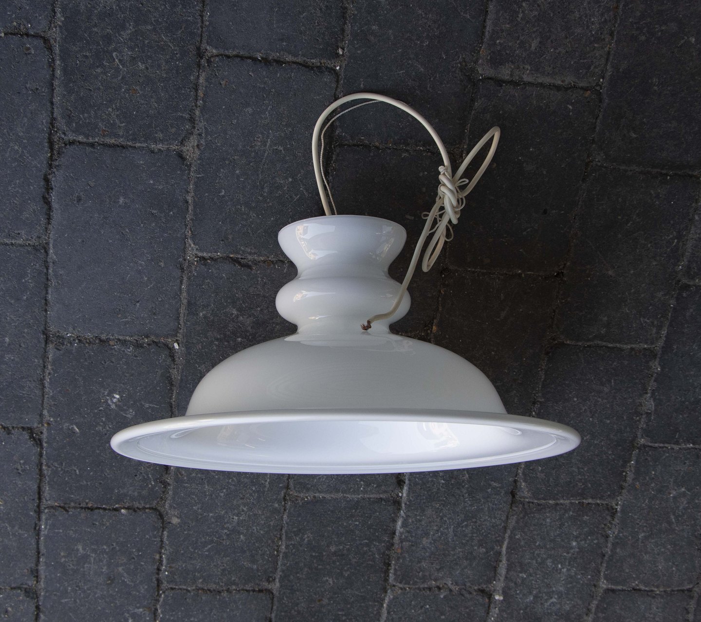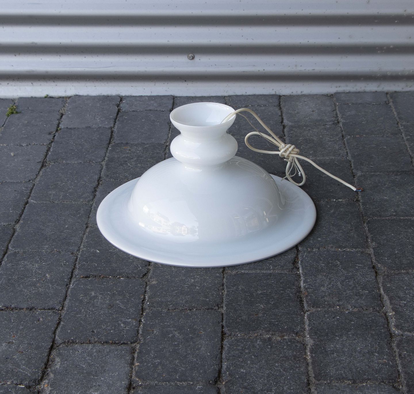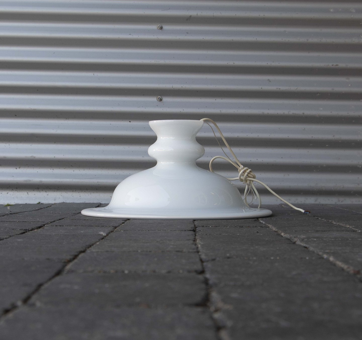 Loftslampe med skærm i opalhvid glas.