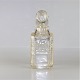 Flot håndlavet trækasse af teaktræ med 3 kvadratiske krystal flasker, som hver bærer et tinskilt. Skiltene er mærket med Cognac, Port og Whisky, fremstillet i Holland.