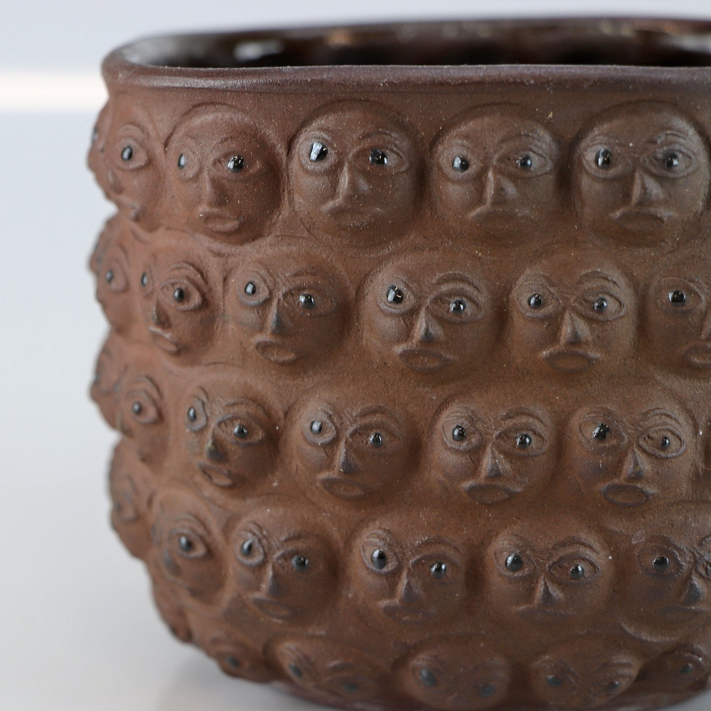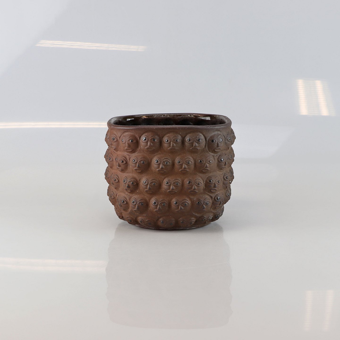 Urtepotteskjuler med ansigtsmotiver. Formgivet i 1980.