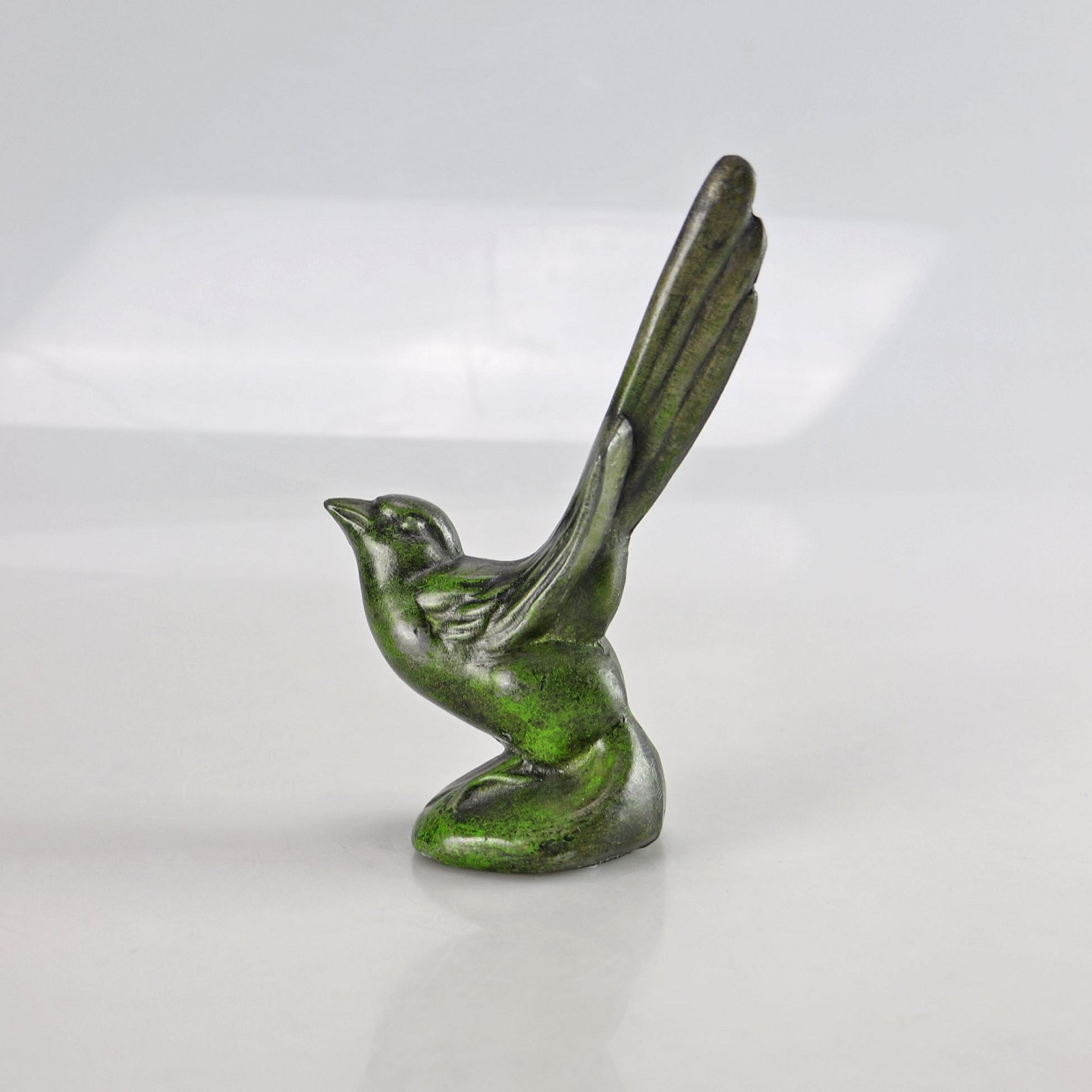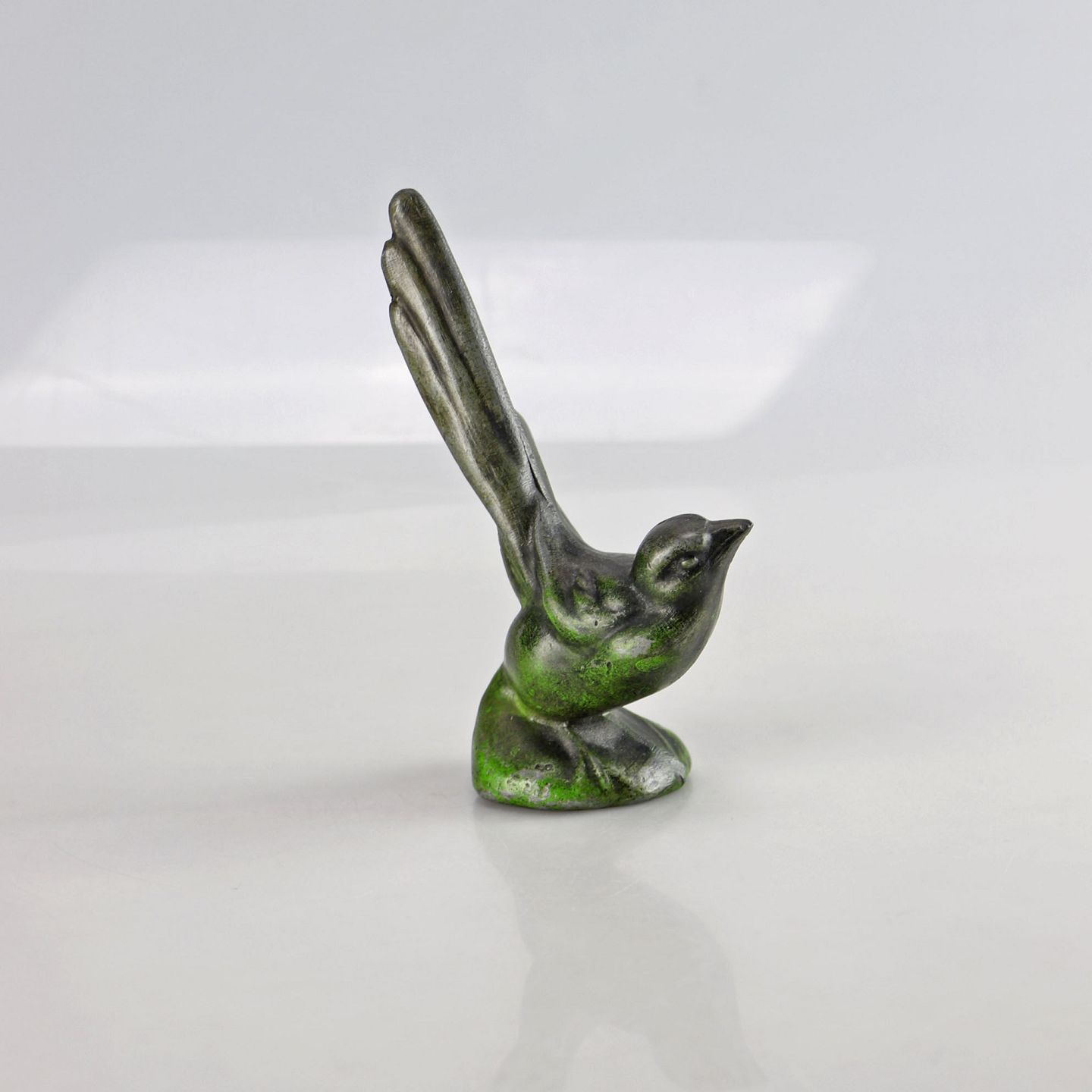 Grønmalet metal fugl
