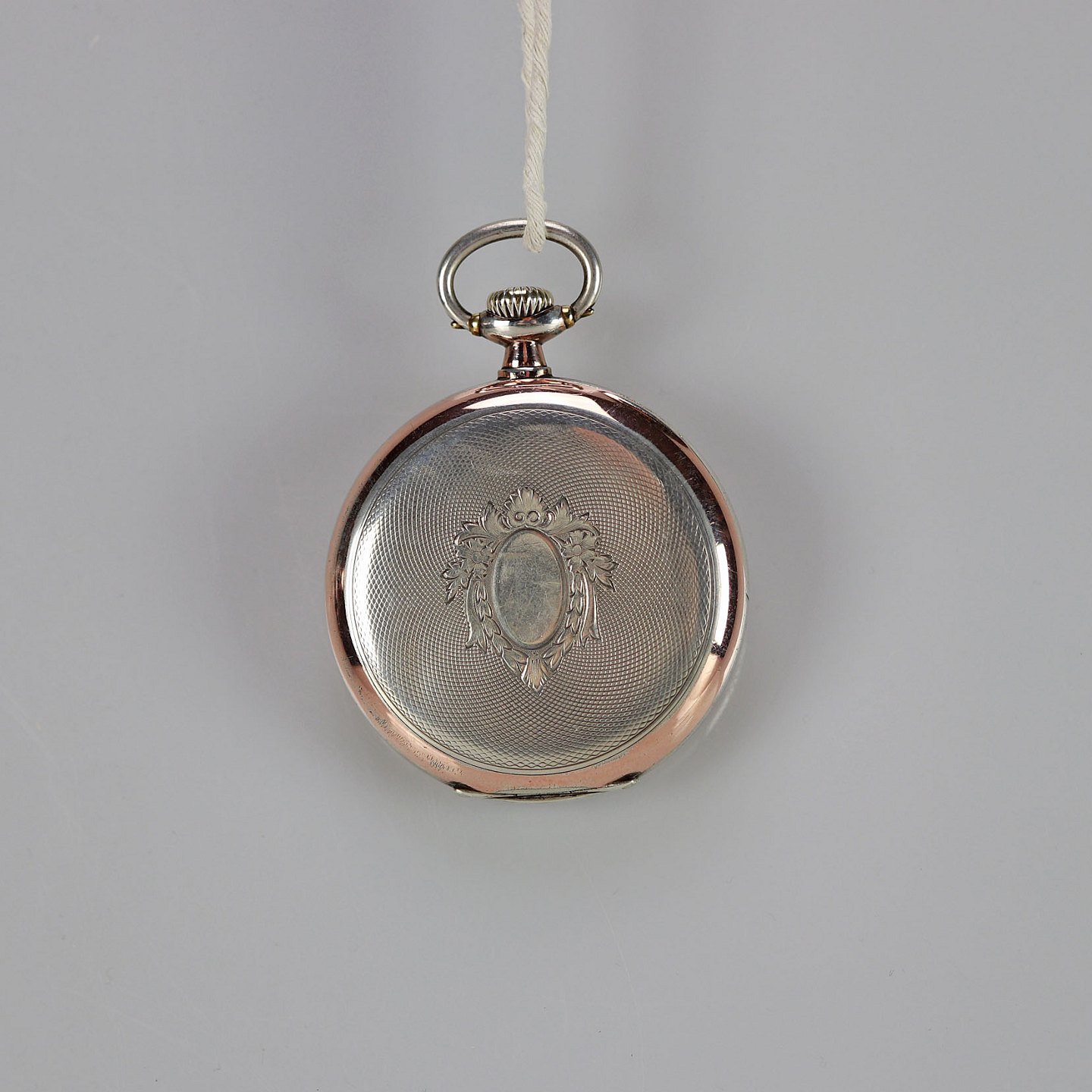 Ur i sølv med guldbelagt kant. Kan åbnes både foran og bagpå.