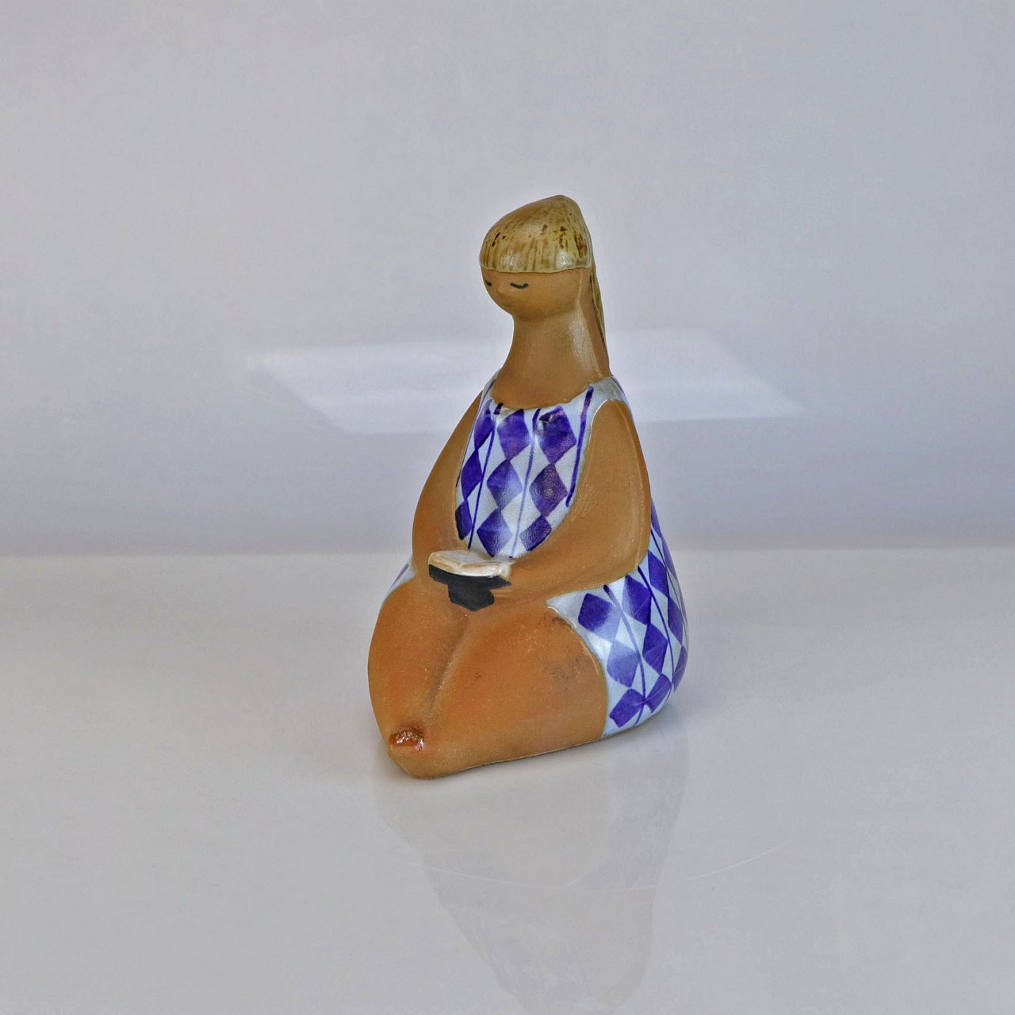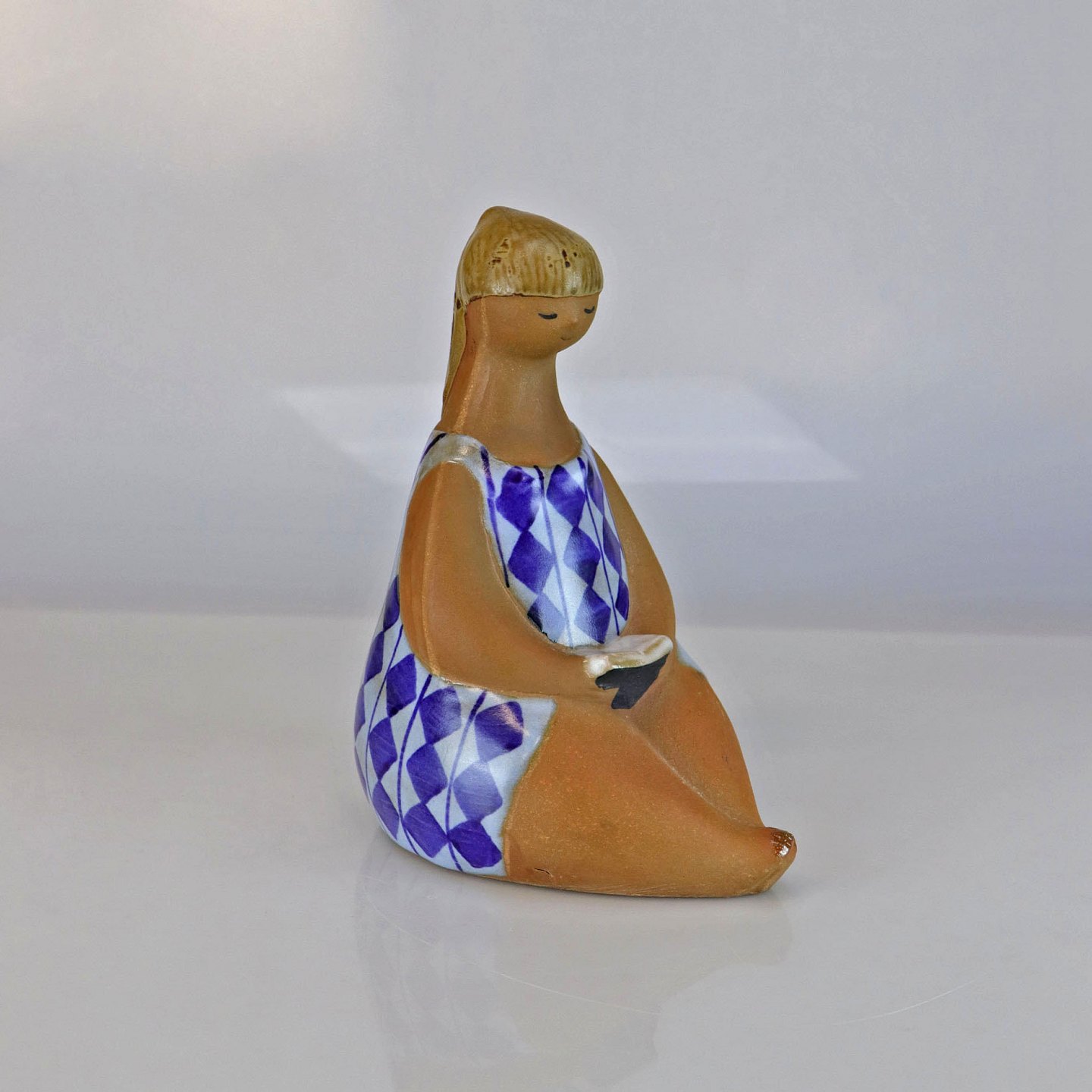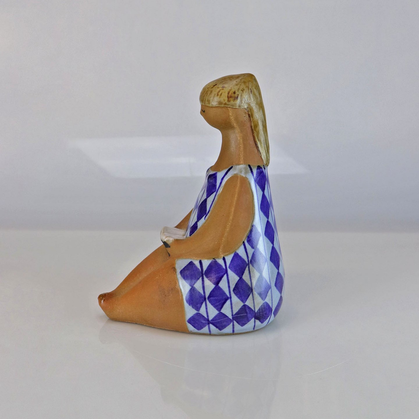 Siddende kvindefigur Amalia af delvist glaseret stentøj
