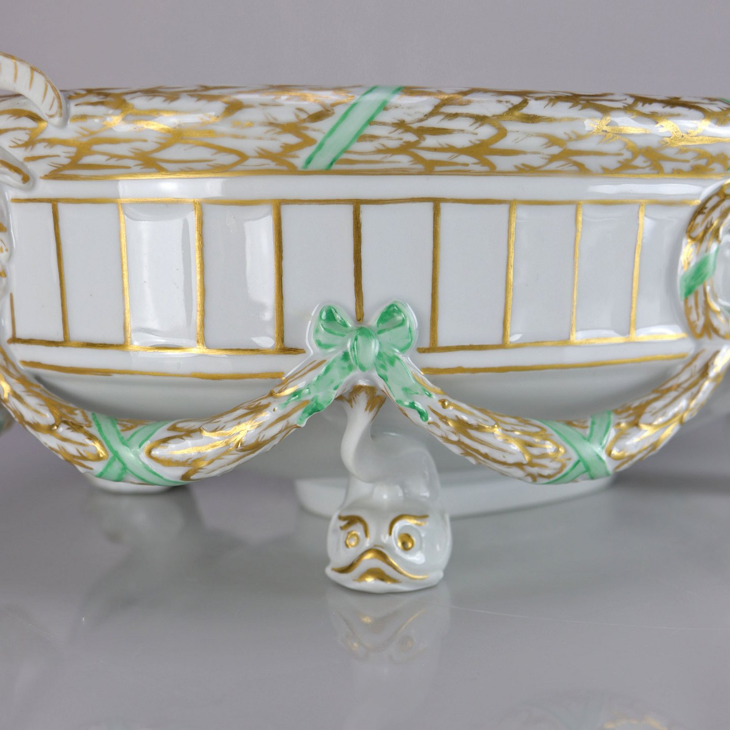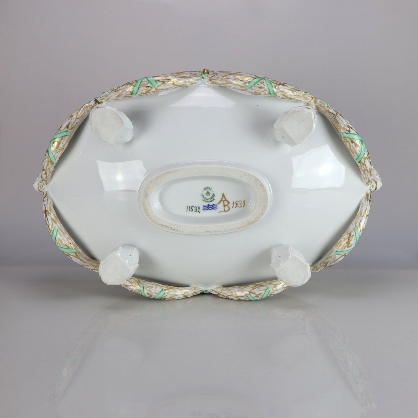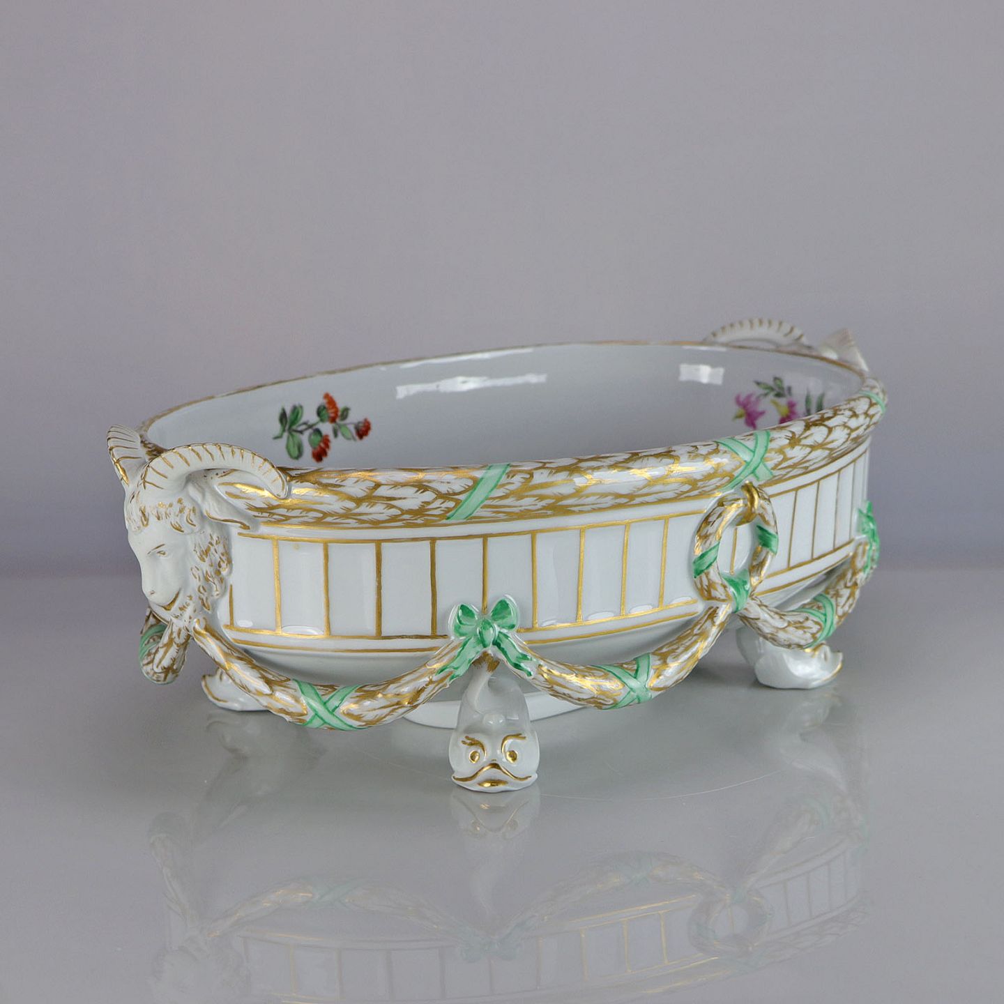 Centerpiece fra Royal Copenhagen. Håndmalet guldkant og vædder hoveder.