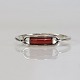 Sølv armring med aflang rød sten. Åbnes ved stenen