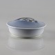 Kgl. Bolsjeskål i porcelæn. Skål med låg i glat lyseblå porcelæn med dekoration af hvide roser på stilke