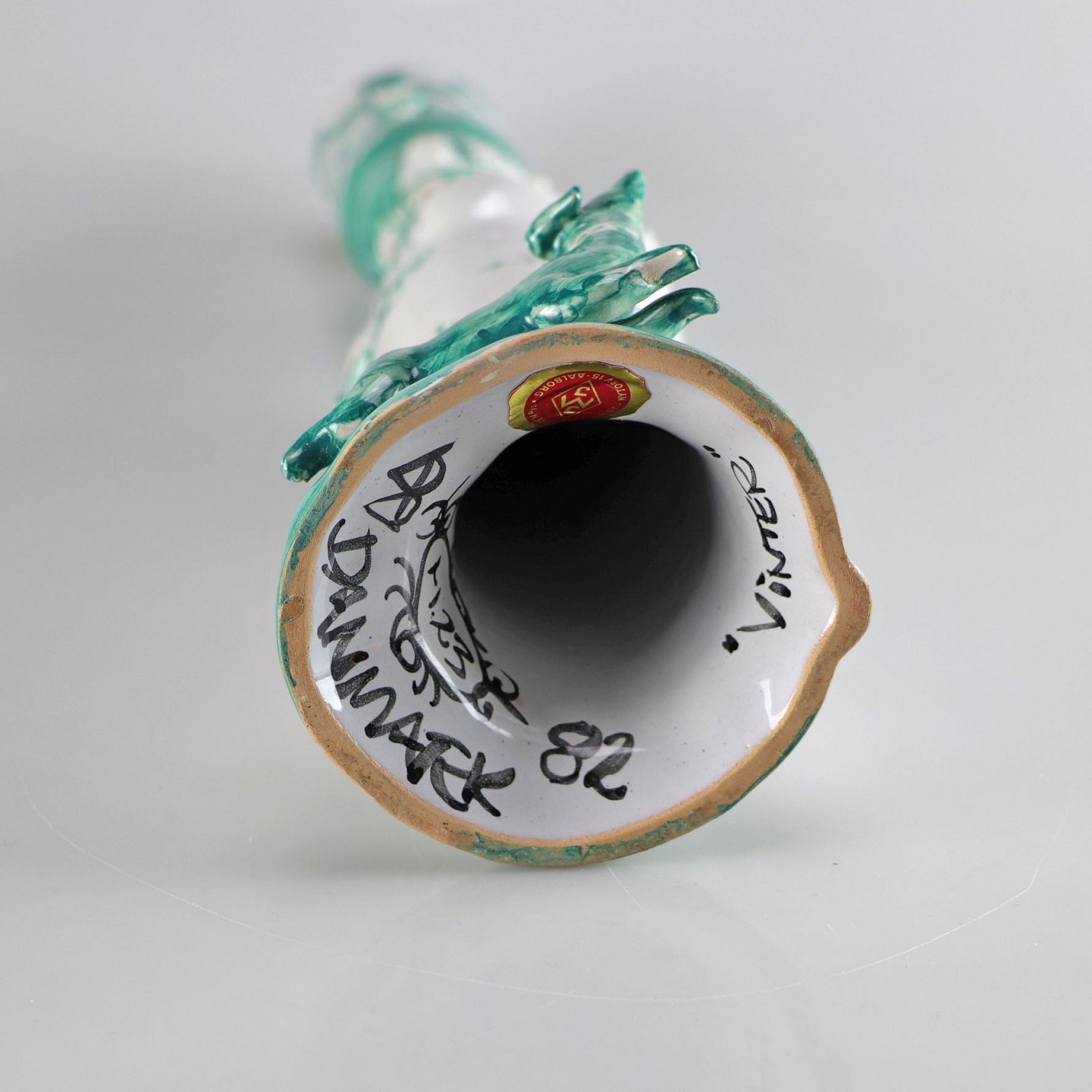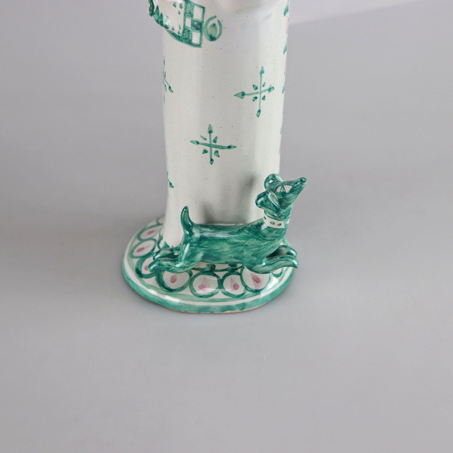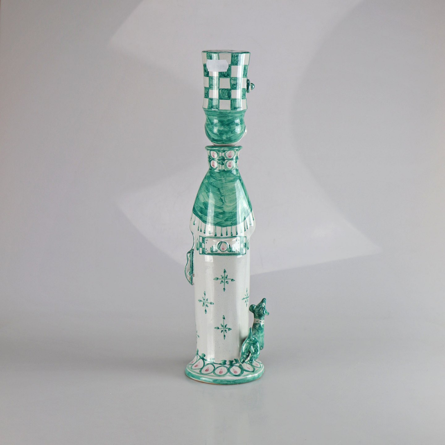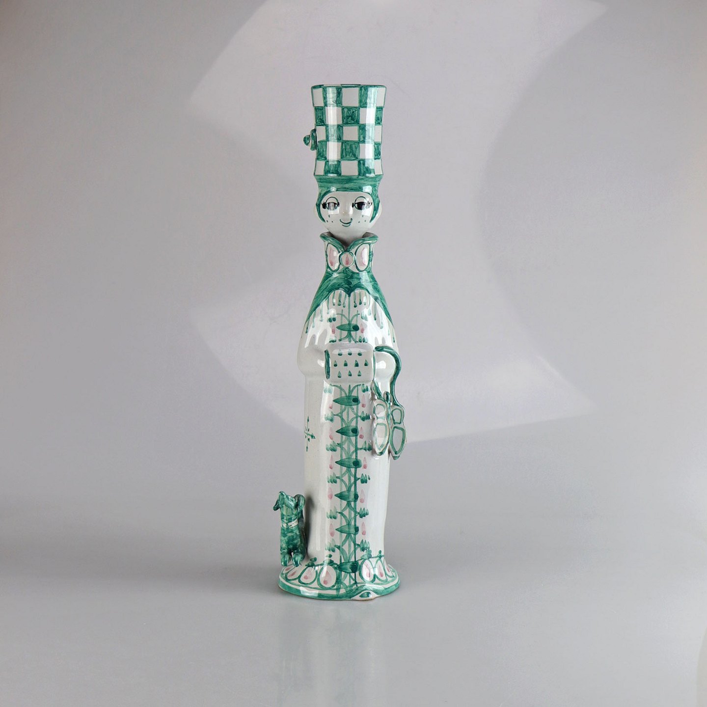 Glaseret keramik med motiv af kvinde med hund og skøjter i grøn dekoration