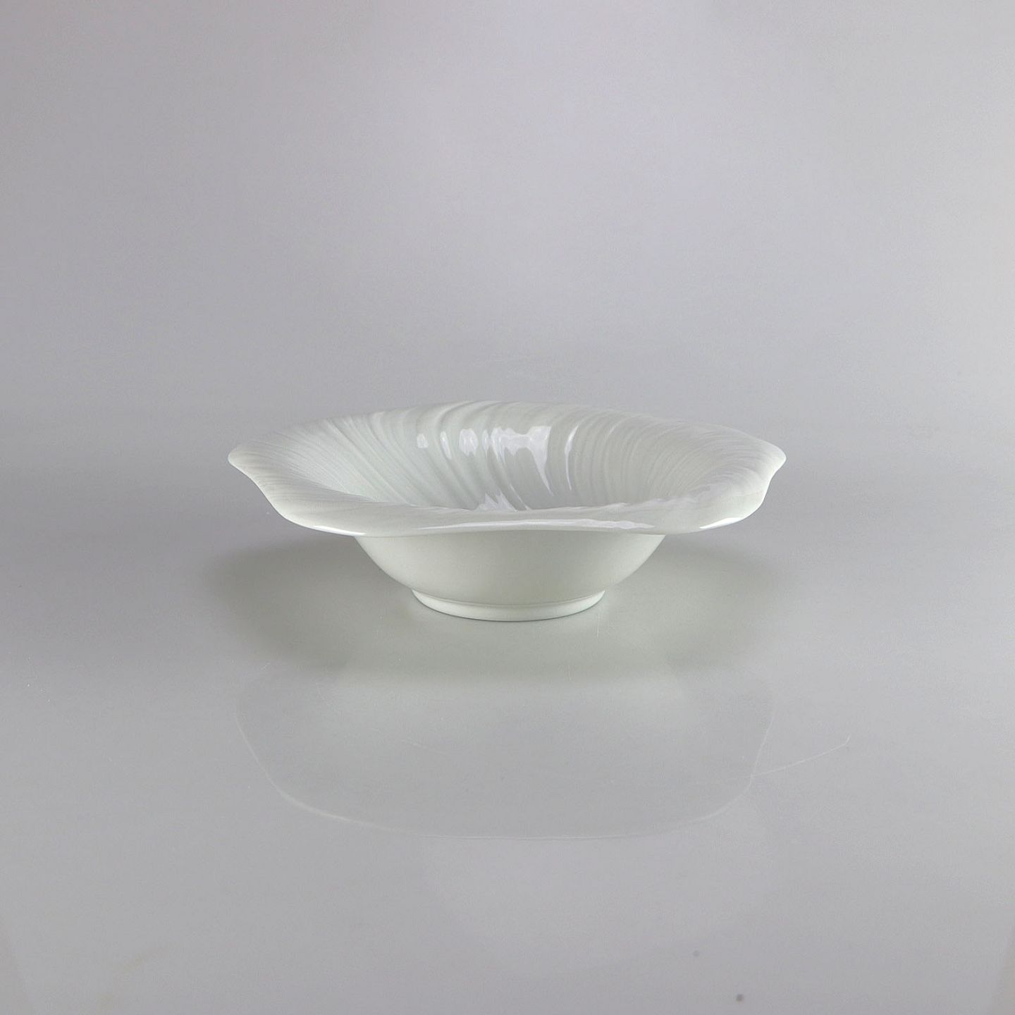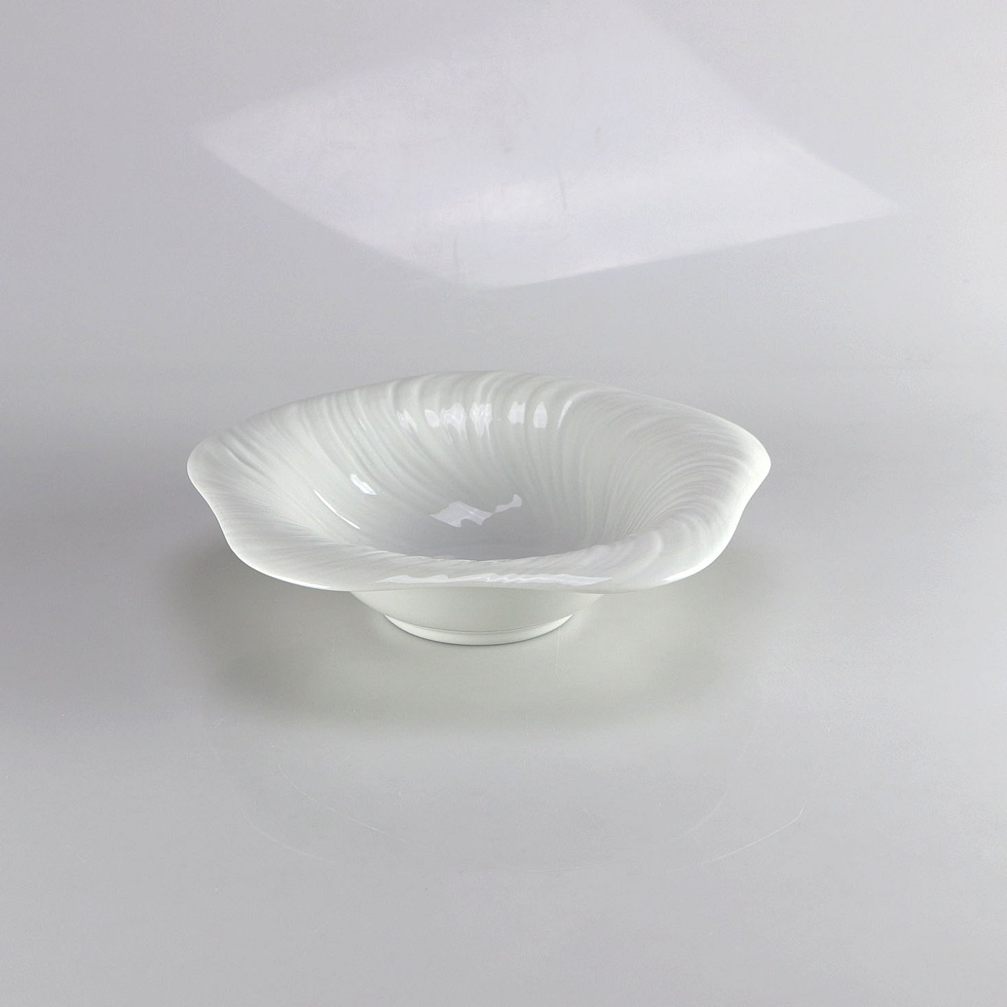 Triton skål i hvidt porcelæn med gennemgående motiv af konkyliens overfladestruktur