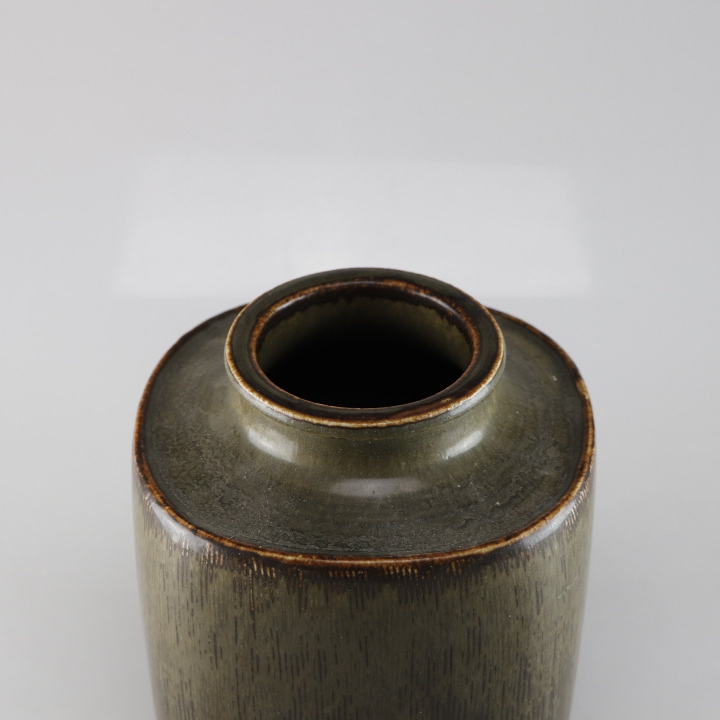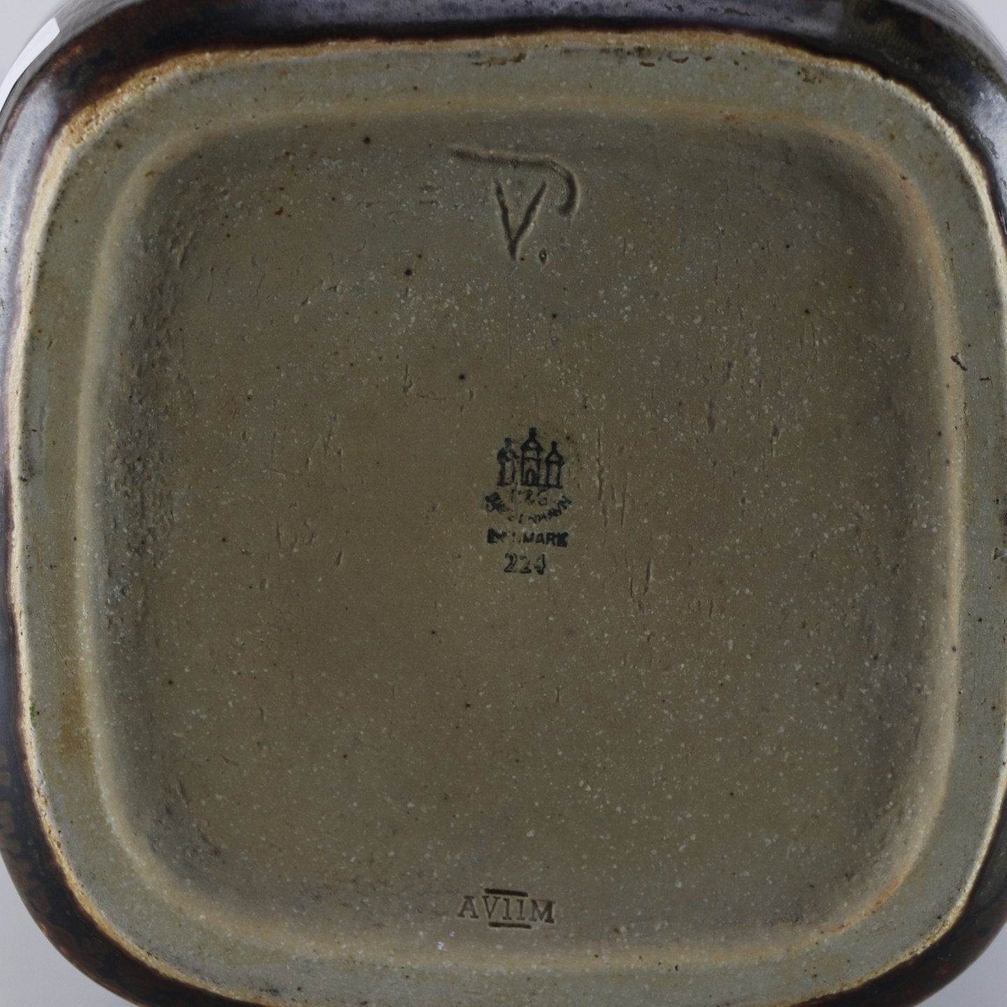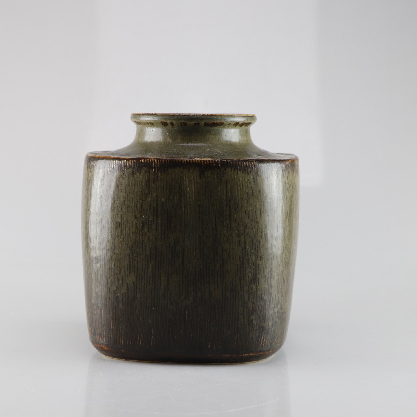 Kvadratisk stentøjsvase i brunlige nuancer