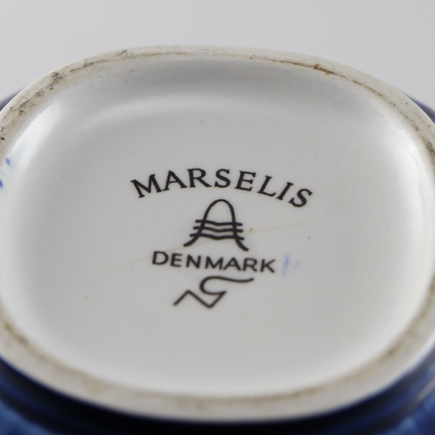Kvadratisk Marselis vase i blå fajance med rillet mønster