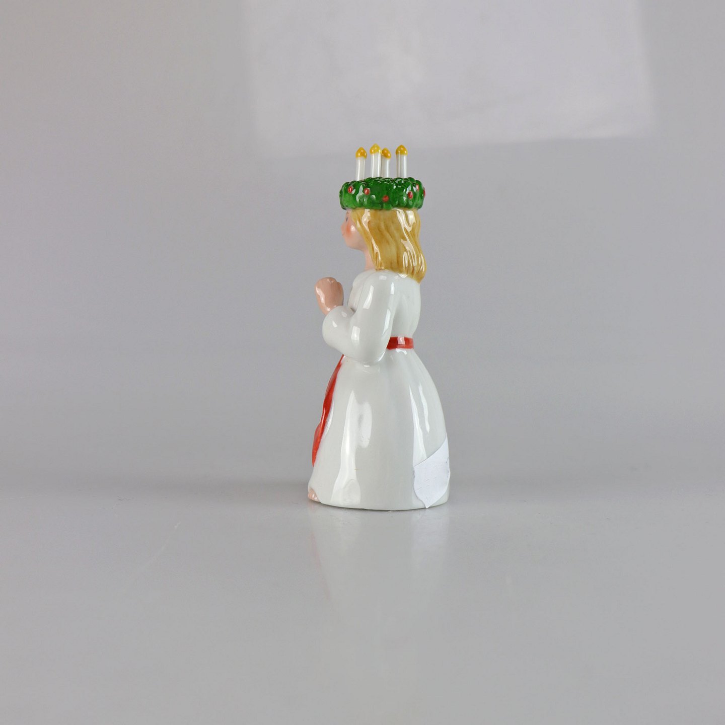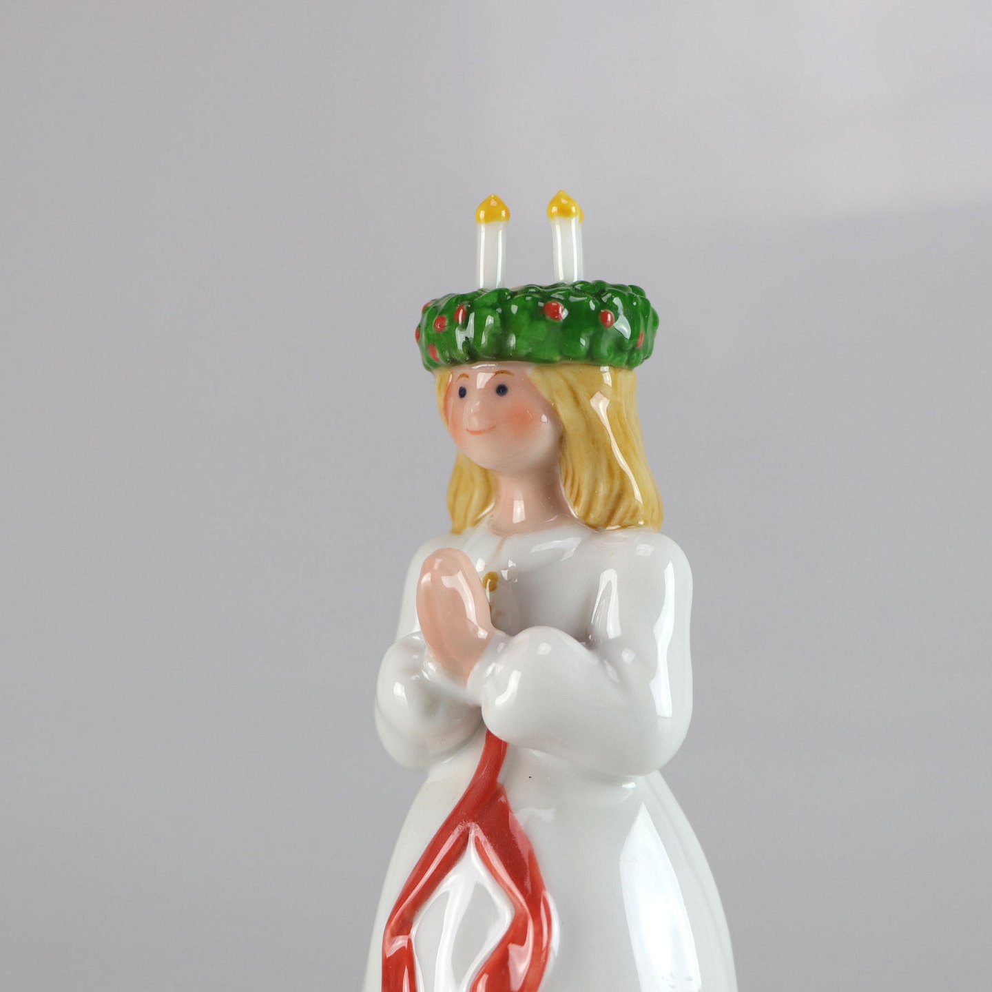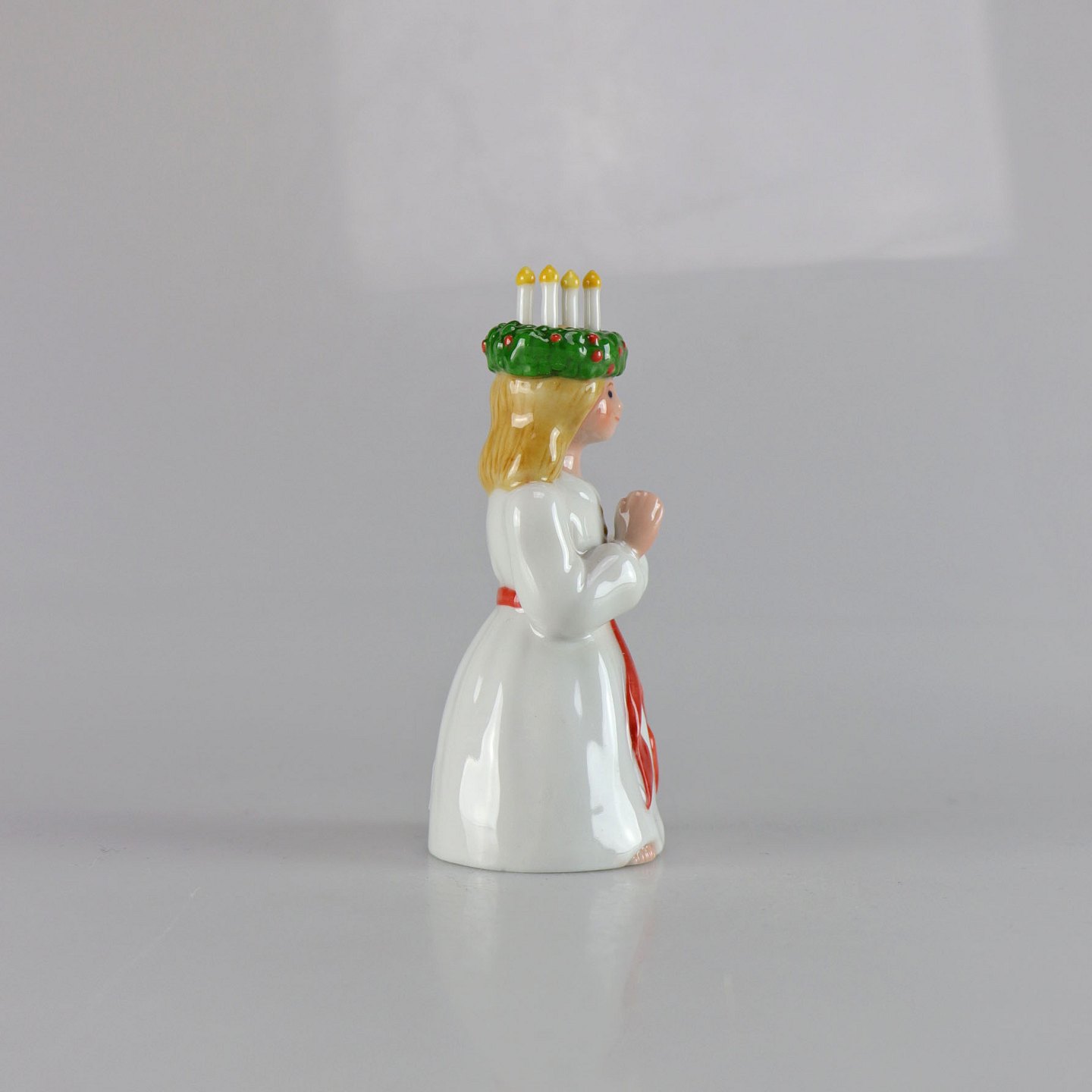 Kongelig porcelænsfigur af pige som Luciabrud med lyskrans på hovedet