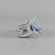 Lille porcelænsfigur med motiv af siddende alf med fugl i hænderne