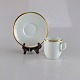 Kaffekop og underkop i glat hvidt porcelæn med gylden kant