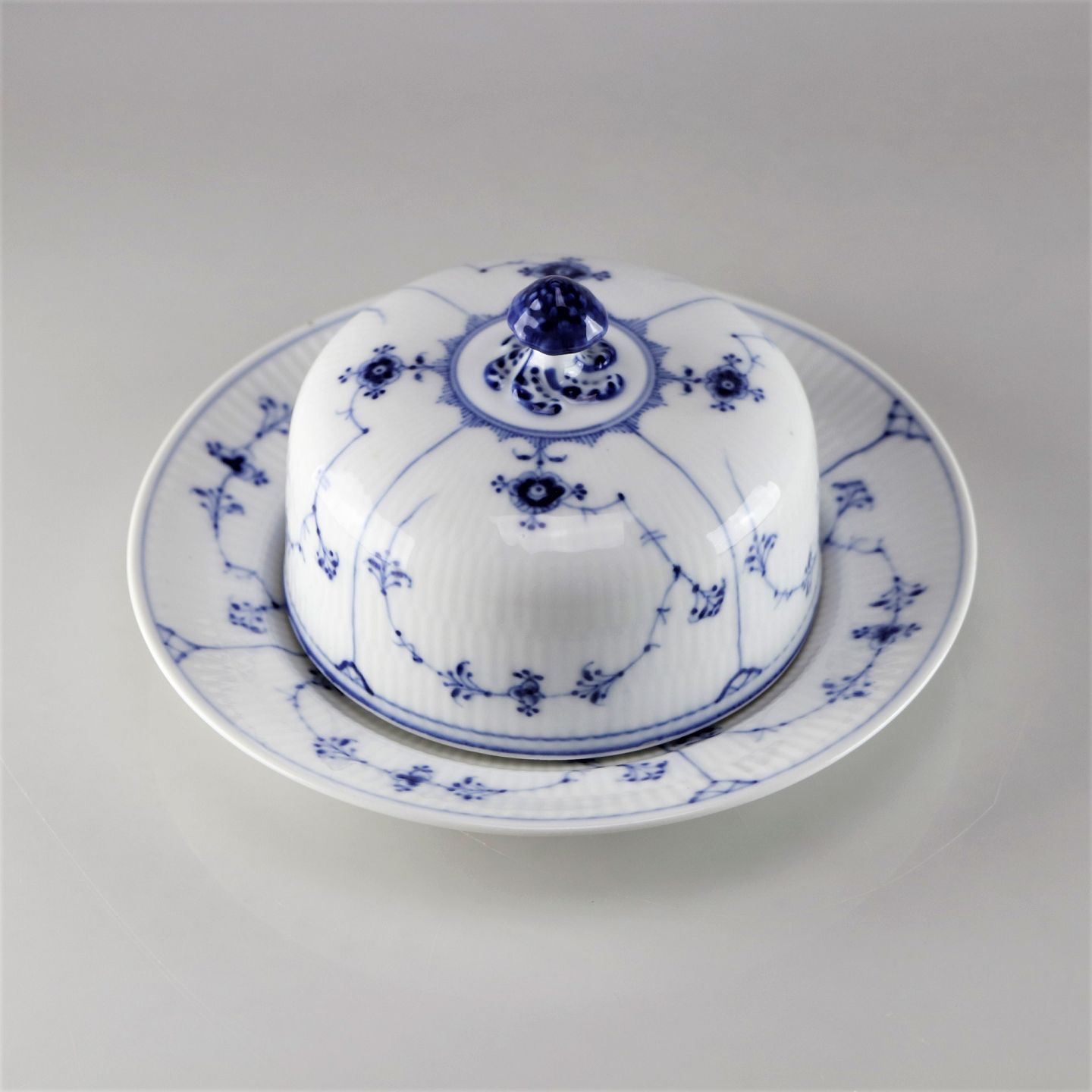 Kongelig Musselmalet riflet smørskål med fast underskål no 1/5