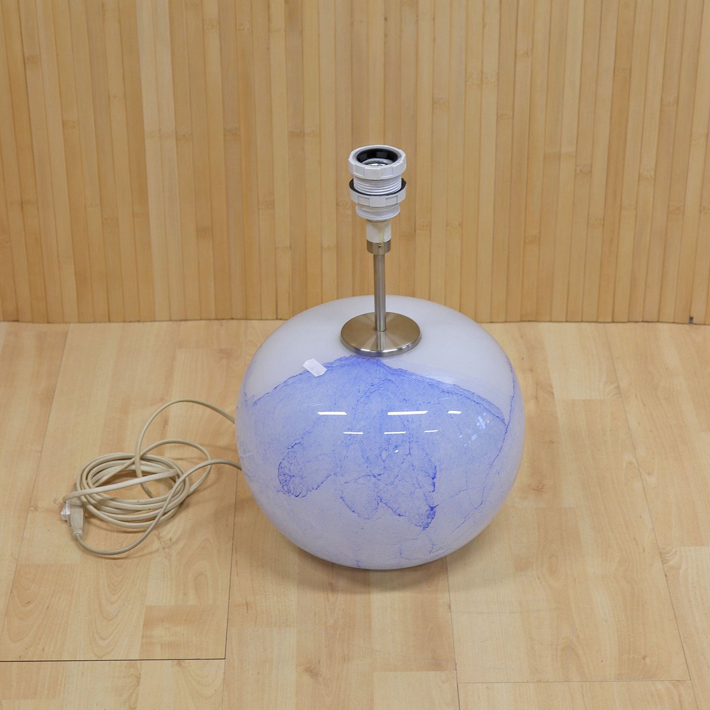 Rund opalhvid lampefod med abstrakt blåt mønster