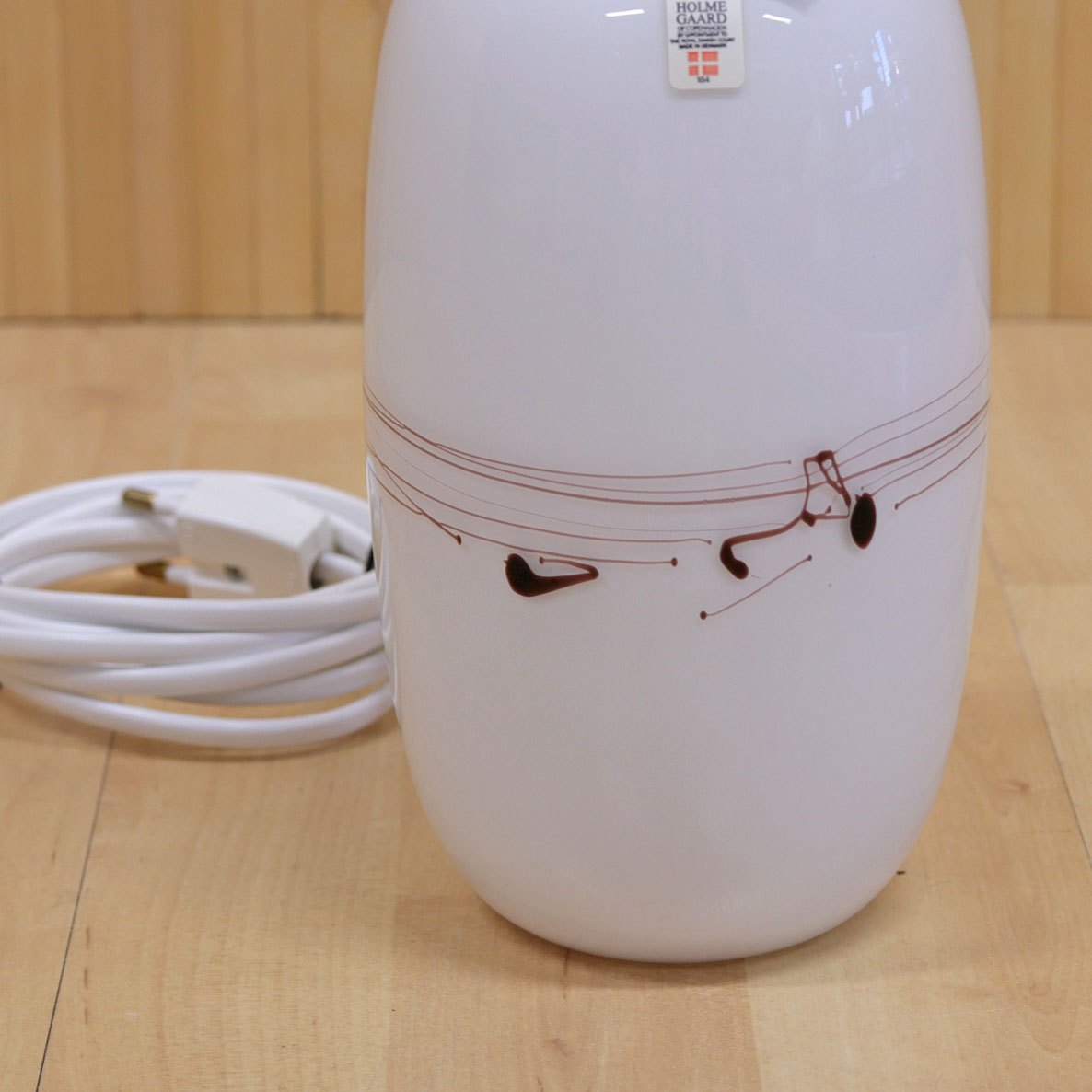Opalhvid lampefod med bordeaux mønster