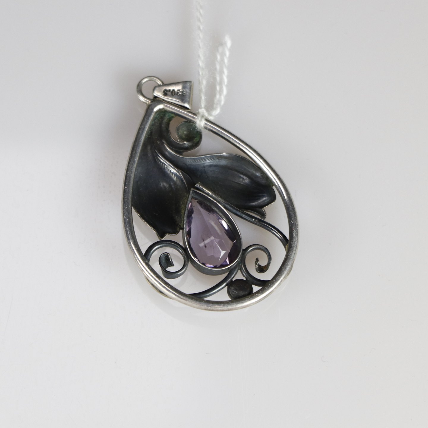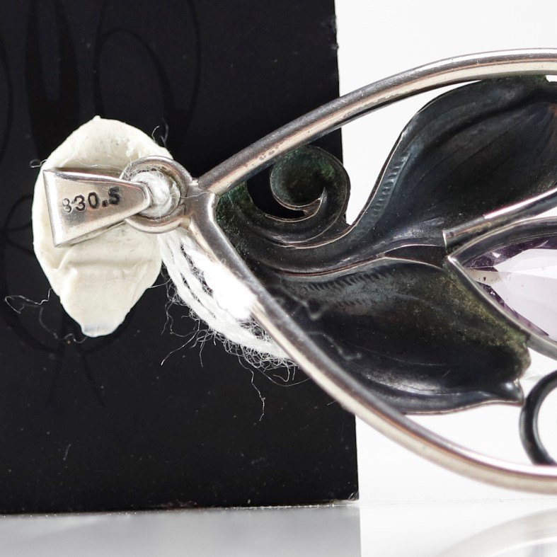 Sølv vedhæng med ametyst formet som en dråbe.