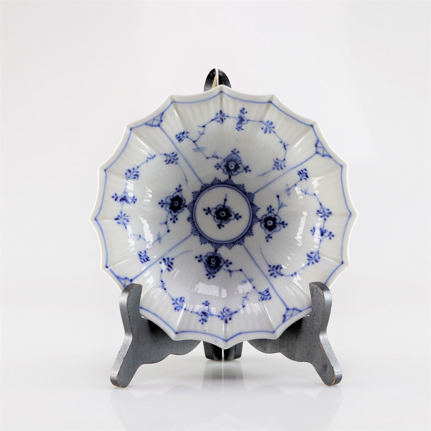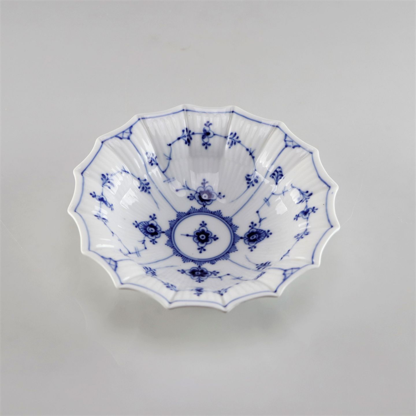 Kongelig musselmalet riflet skål no 1/141 med kantet sider