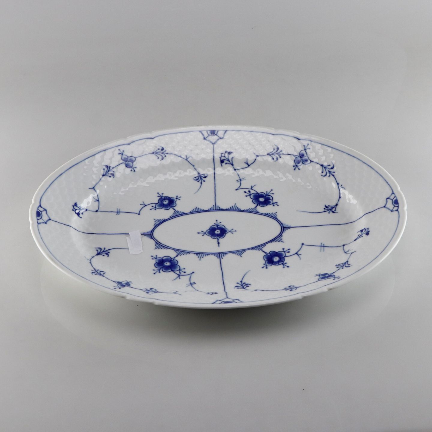 Hvidt porcelæn i skelform med dekoration af blå ranker