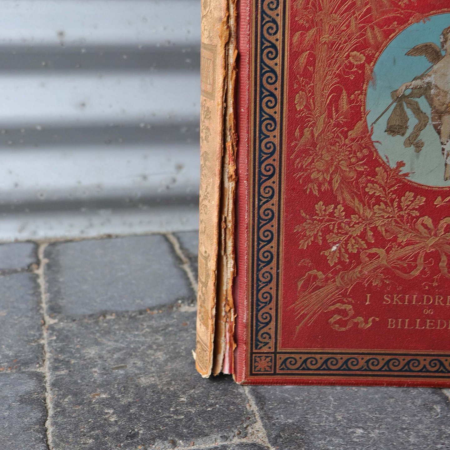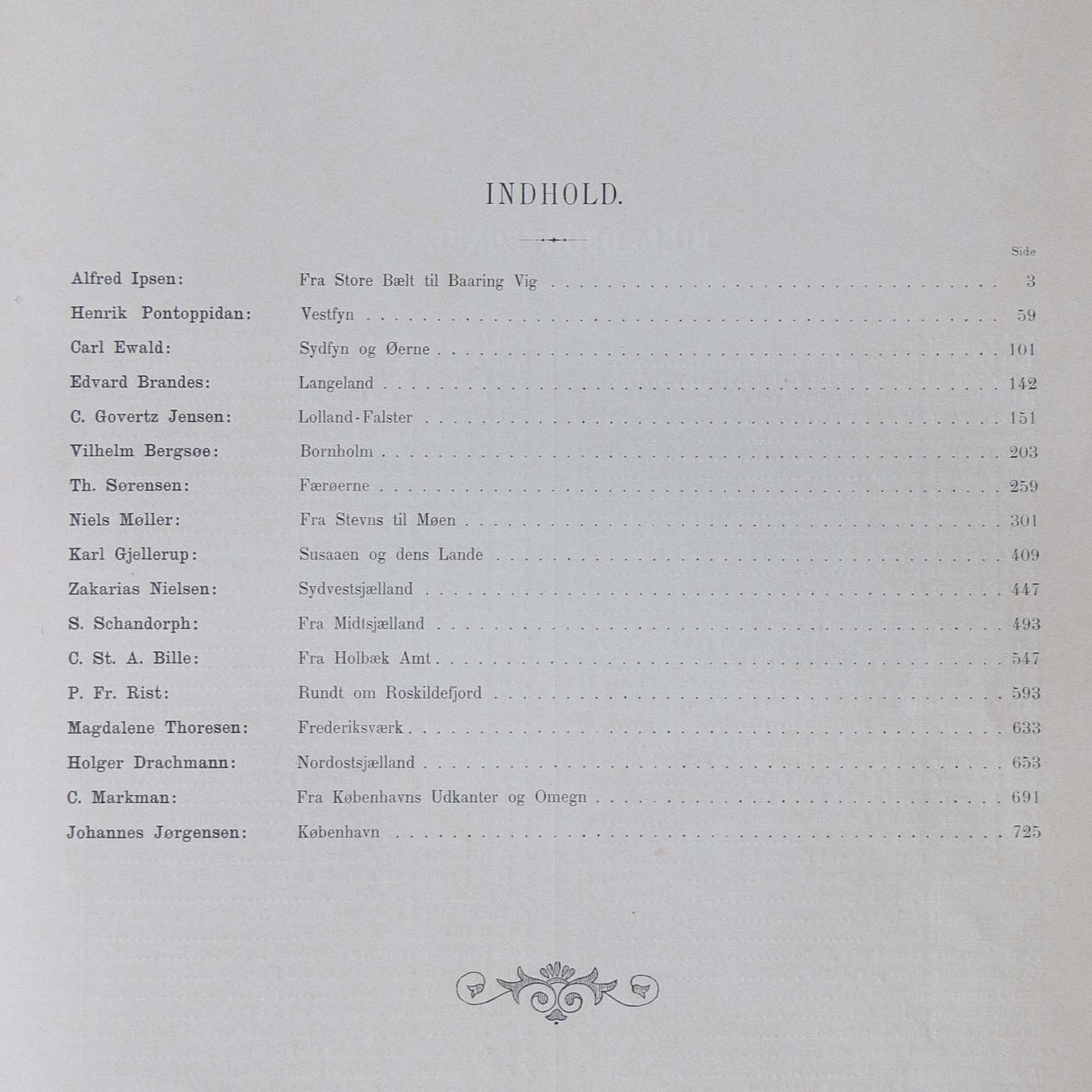 Et sæt bøger med titlen Danmark i skildringer og billeder af danske forfattere og kunstnere