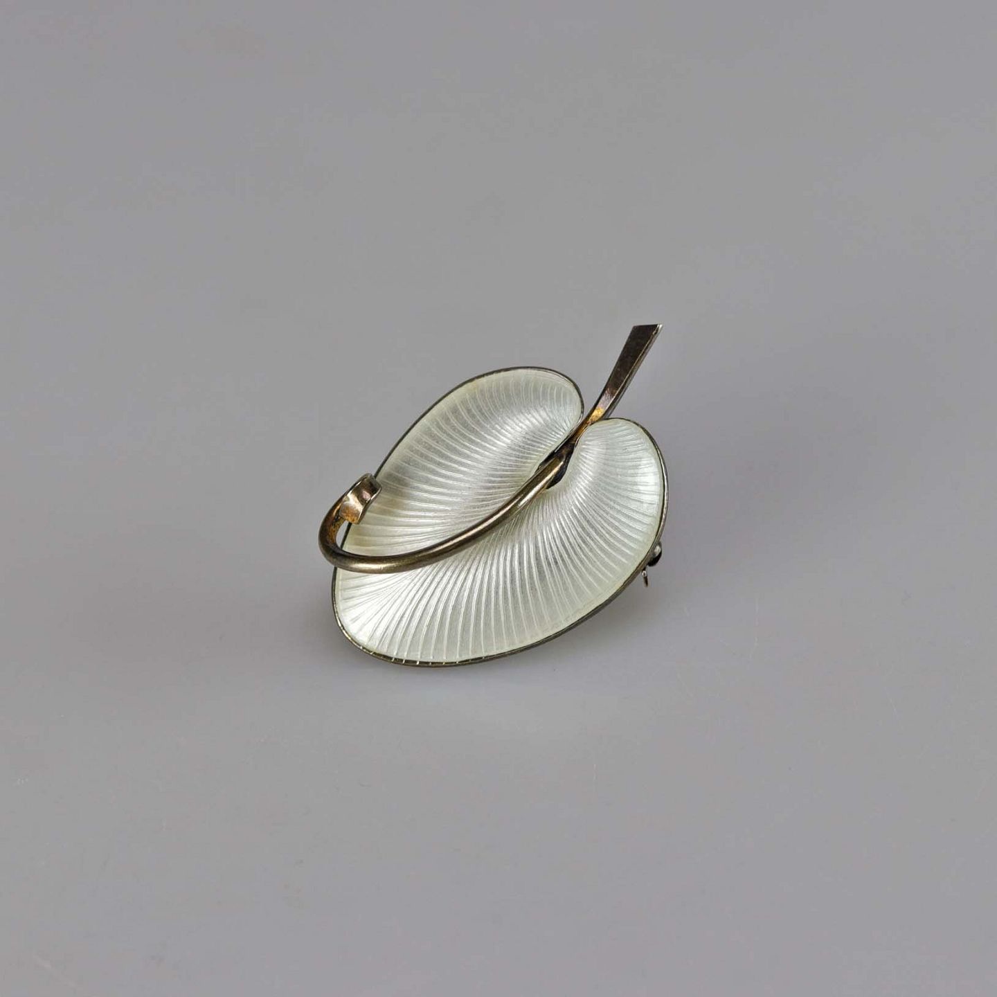 Broche i forgyldt sølv med hvid emajle formet som Calla lilje
