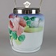 Kiksespand opal glas rødlige blomster