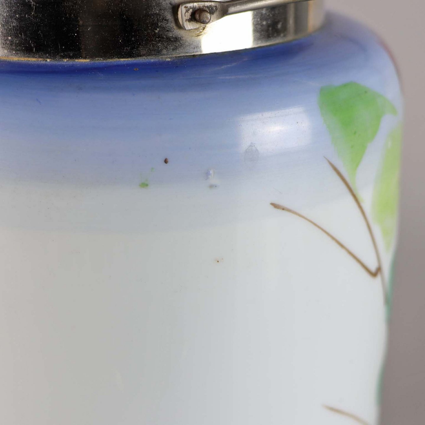 Opal hvid glas med påmalede motiv af rose og træ