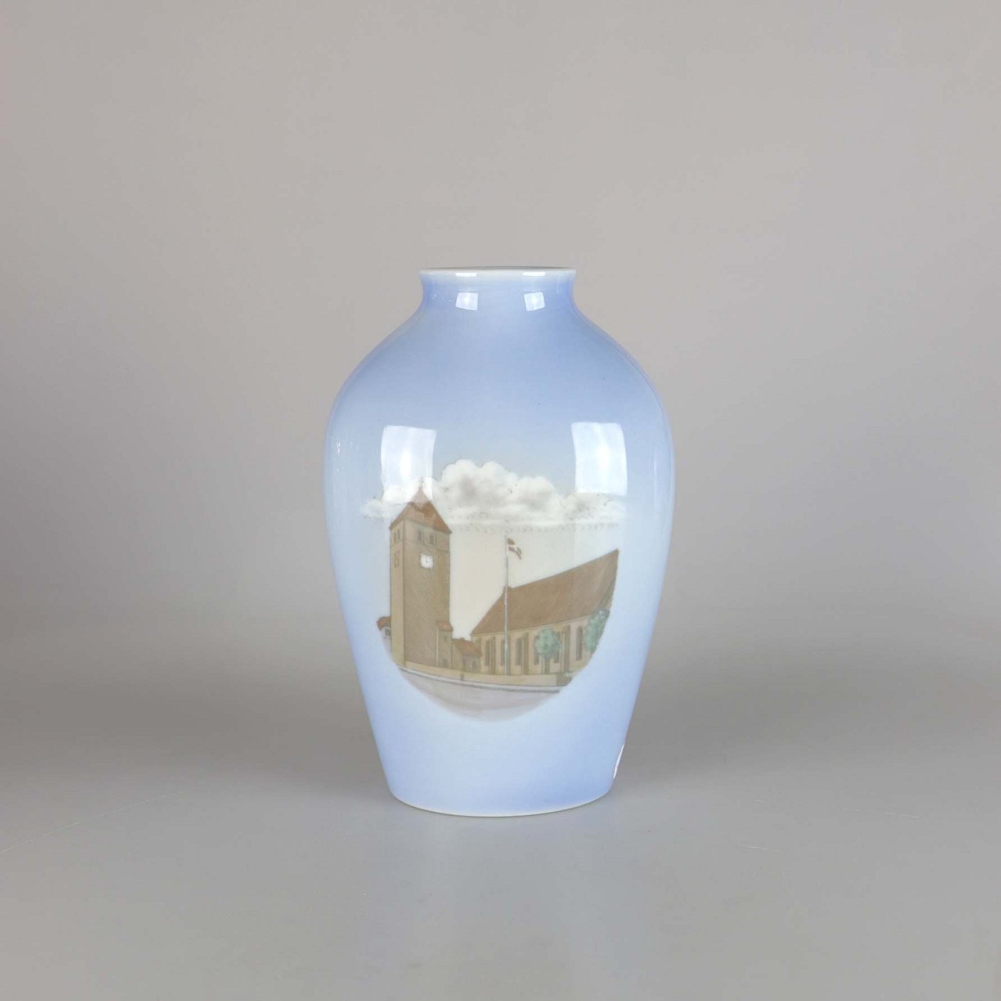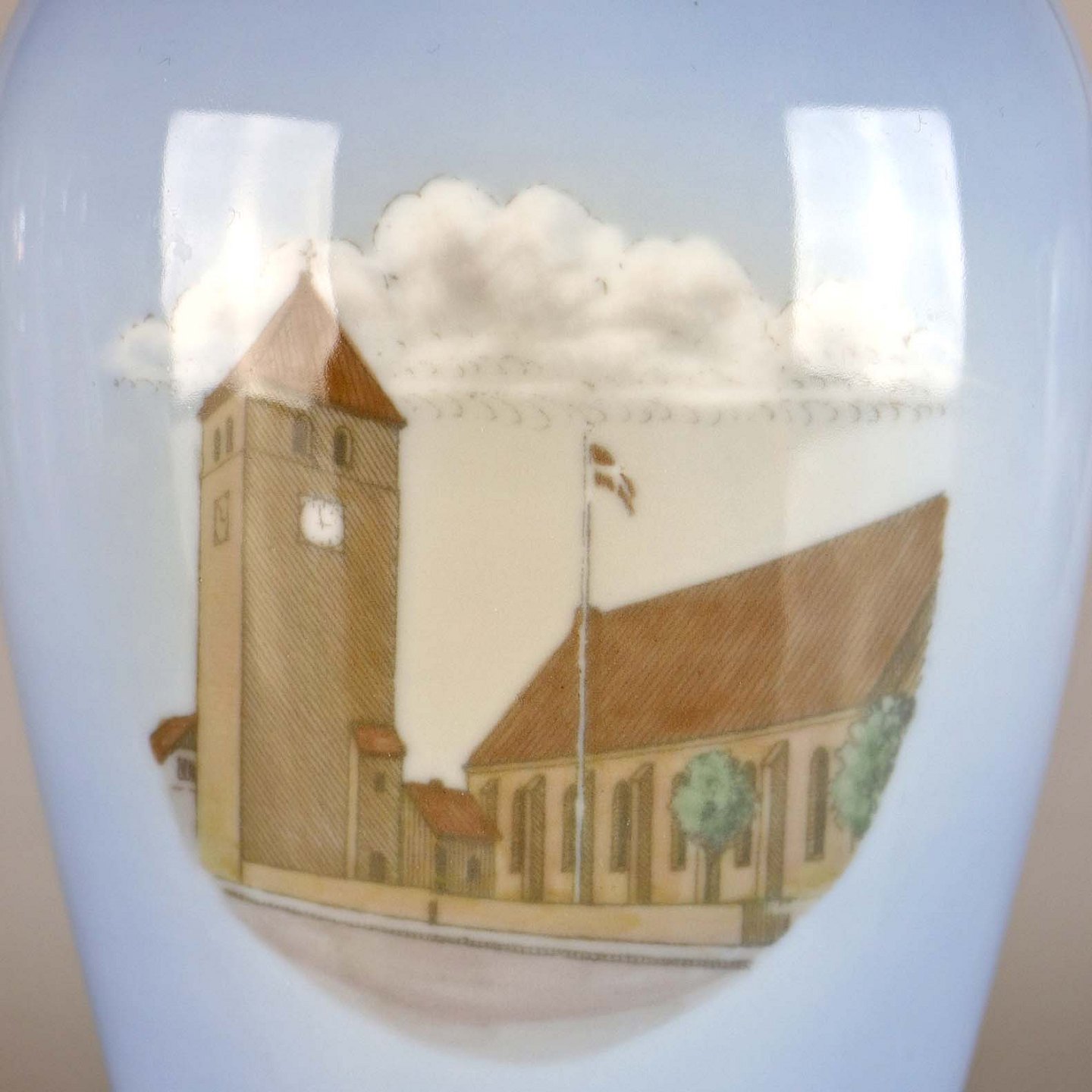 Porcelæns vase no 1353/5239 med motiv af Brønderslev kirke
