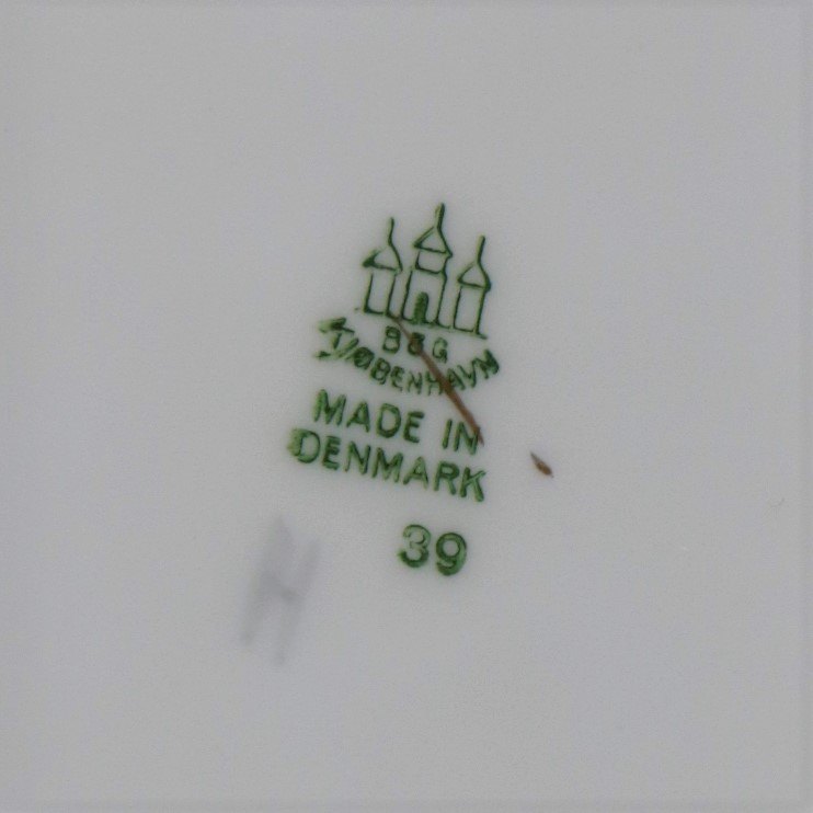 Rund asiet i porcelæn fra stellet Mågestel med guldkant no 39