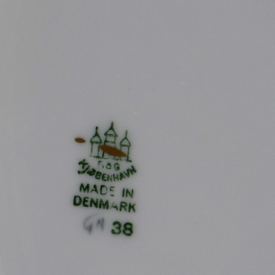 Rund asiet i porcelæn fra stellet Mågestel med guldkant no 38