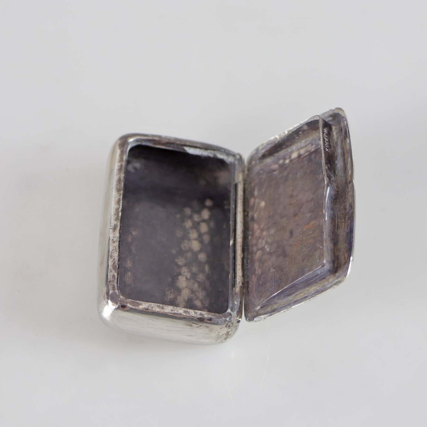 Pilleæske i sølv med dekoreret låg