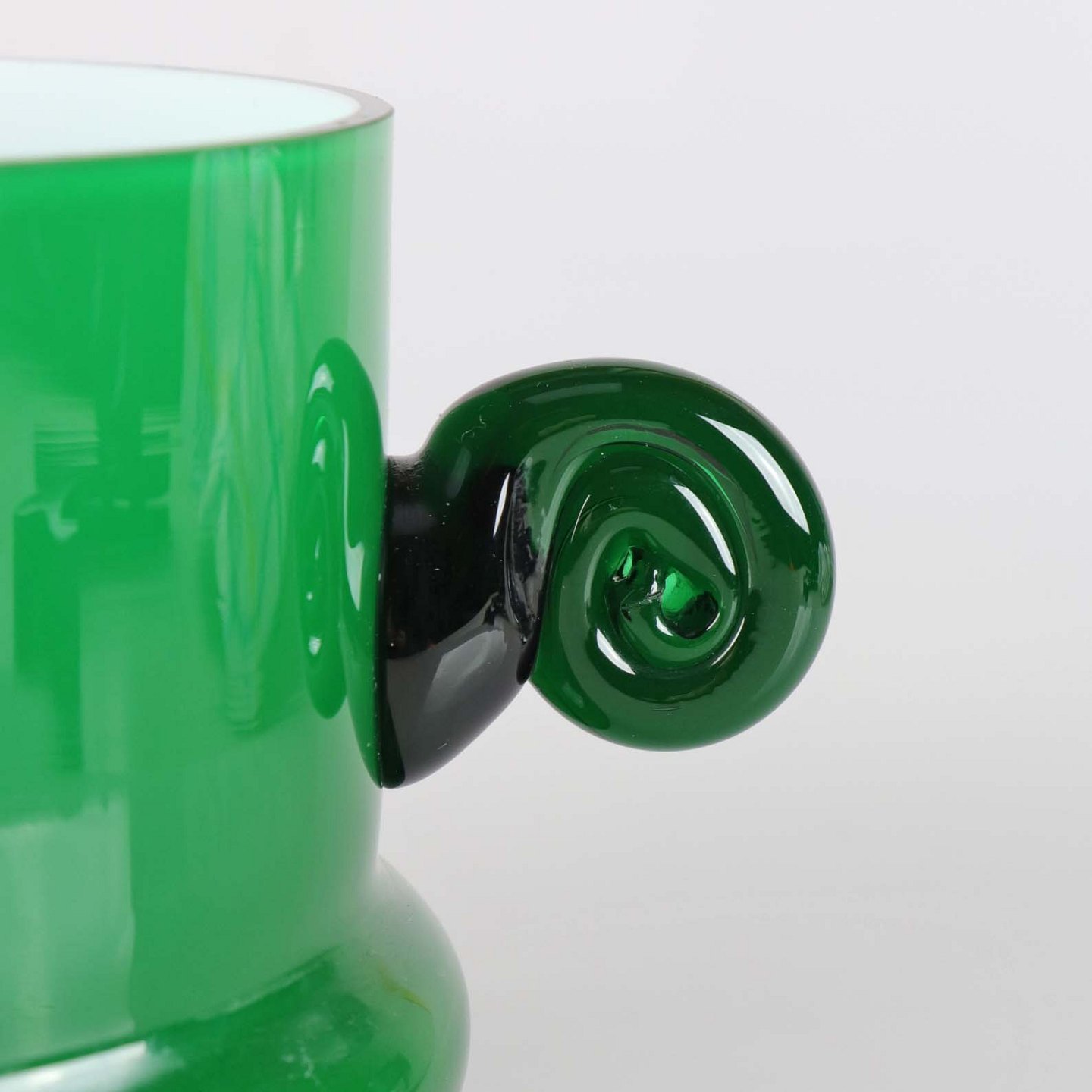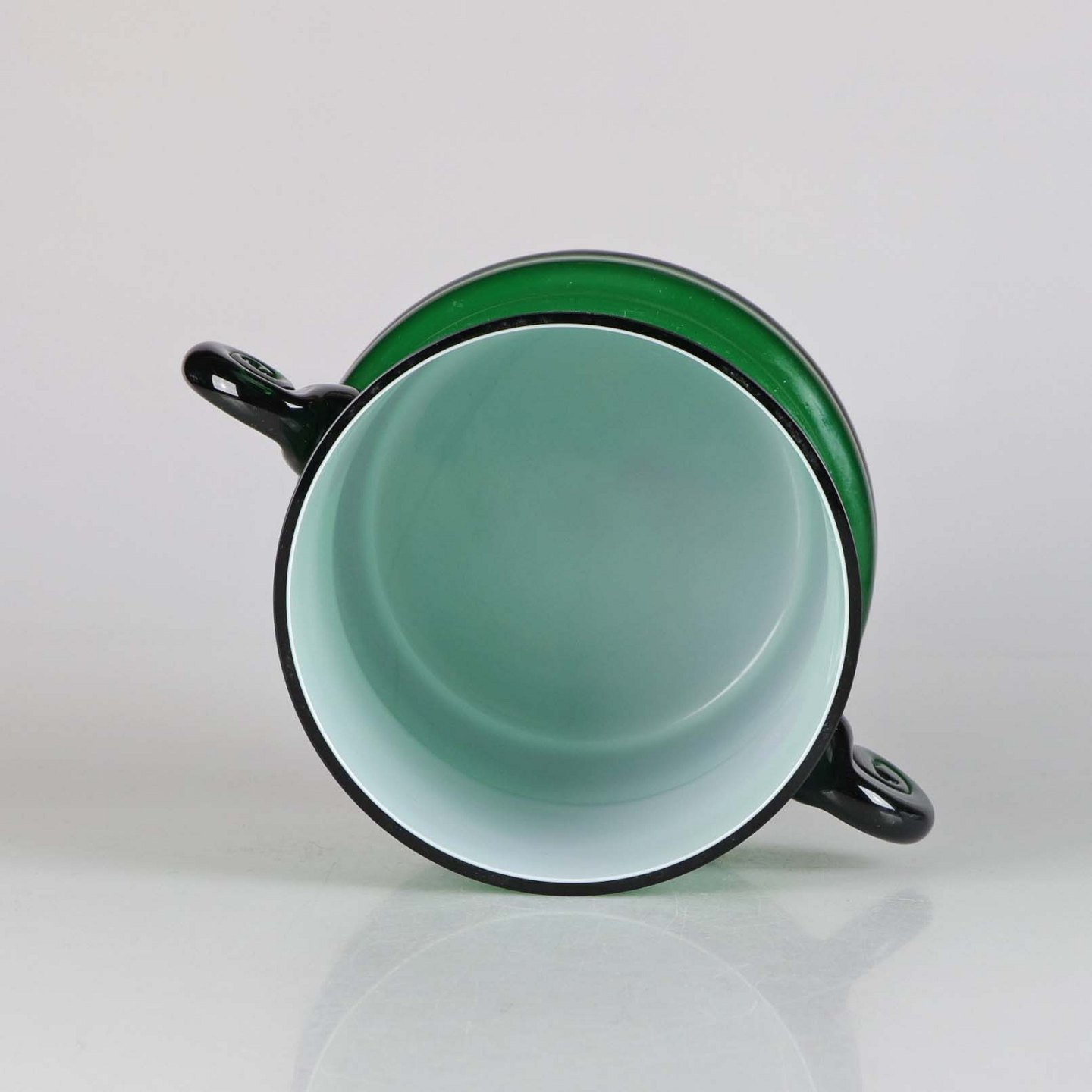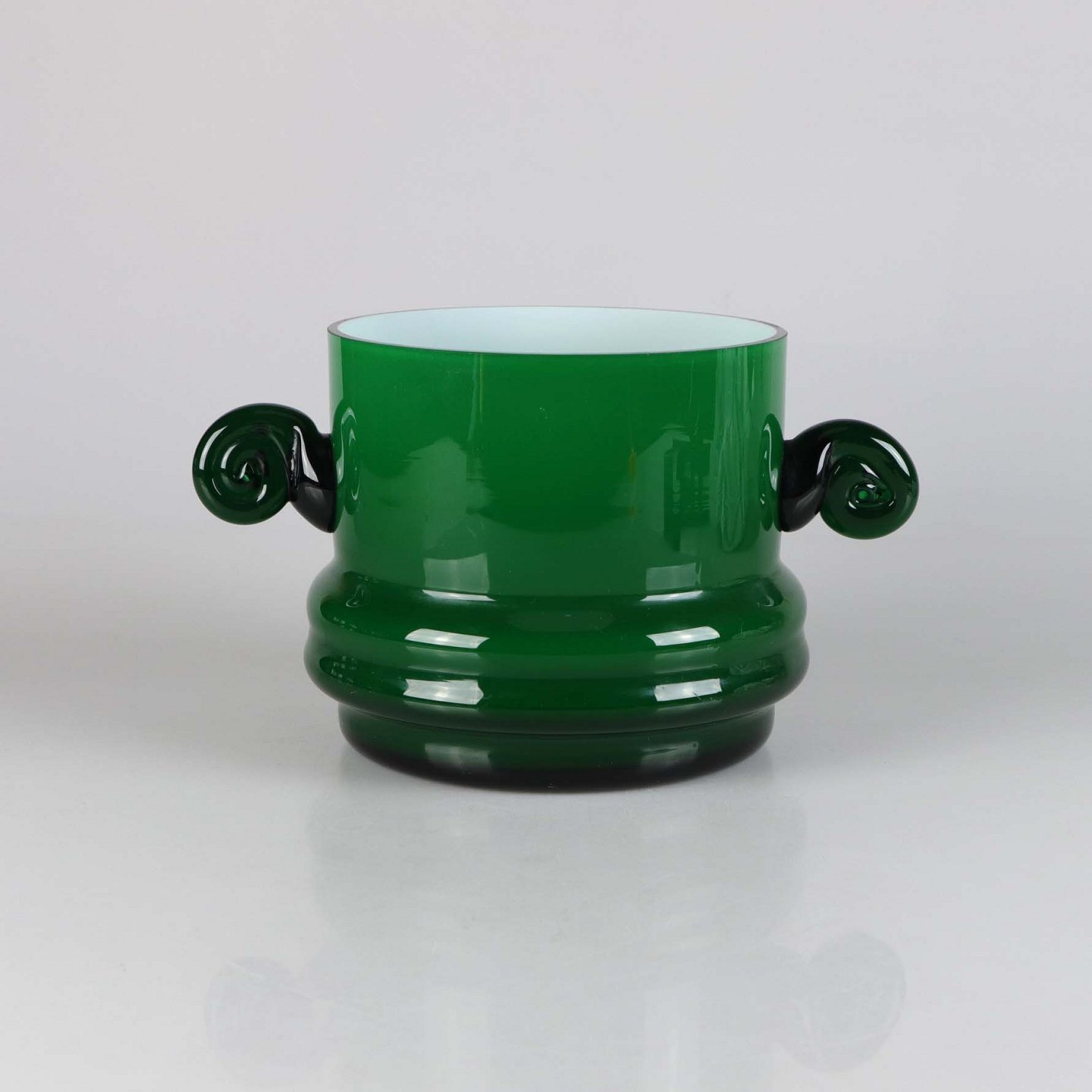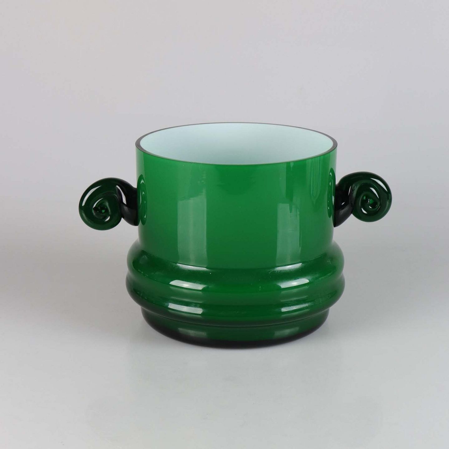 Urtepotteskjuler med håndtag i opal hvid og grønt glas