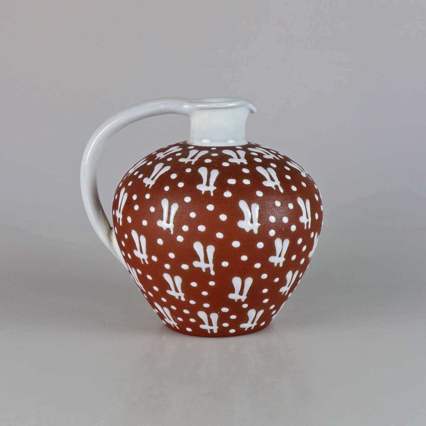 Zeuten kande i rødbrunt keramik med hvidt motiv