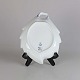 Glat hvidt porcelæn med flettet kant og dekoreret med blå blomster