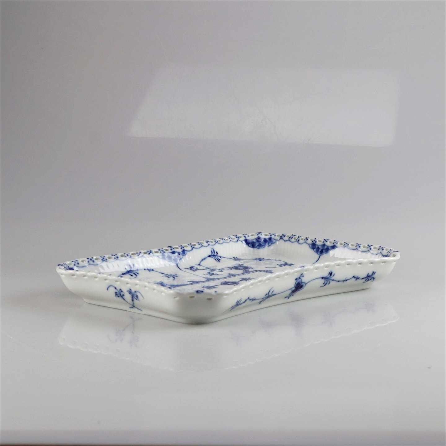 Rektangulært fad fra stellet Musselmalet helblonde nr. 1/1195