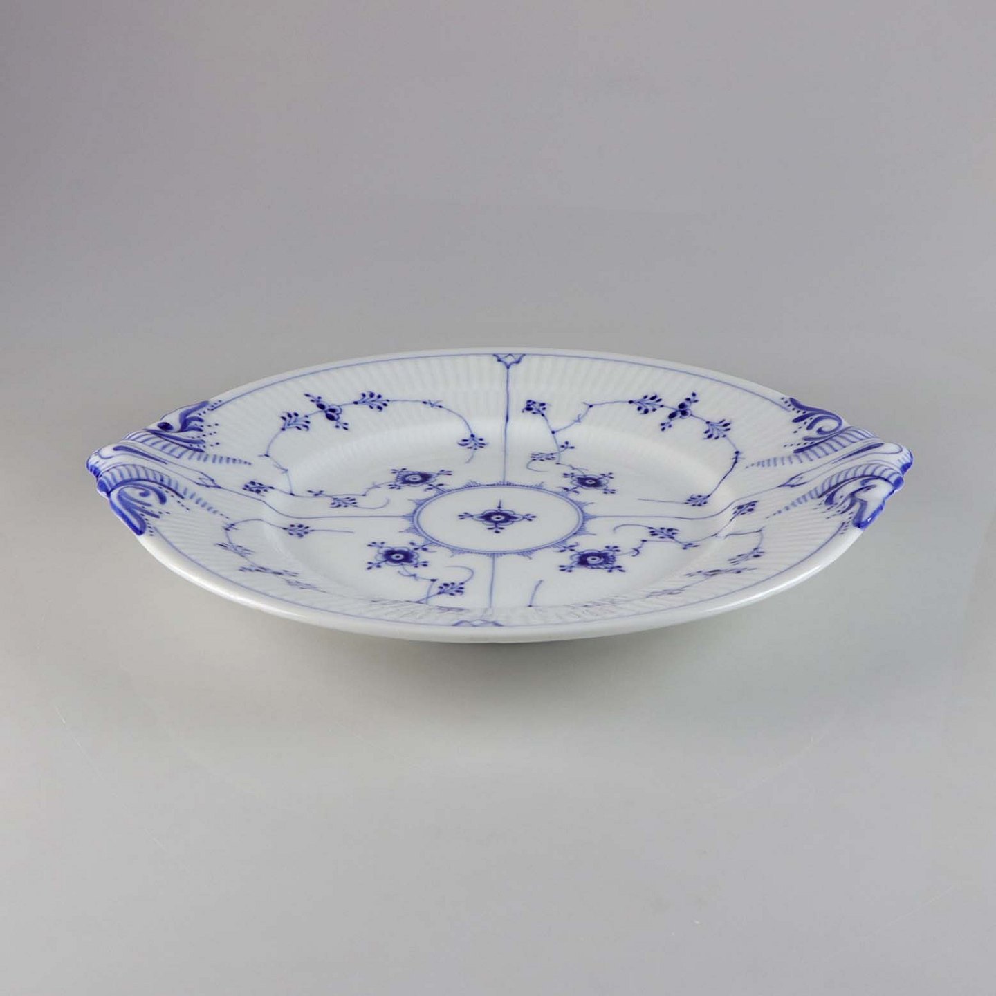 Kongeligt rund fad med hanke fra stellet musselmalet riflet no 1/319