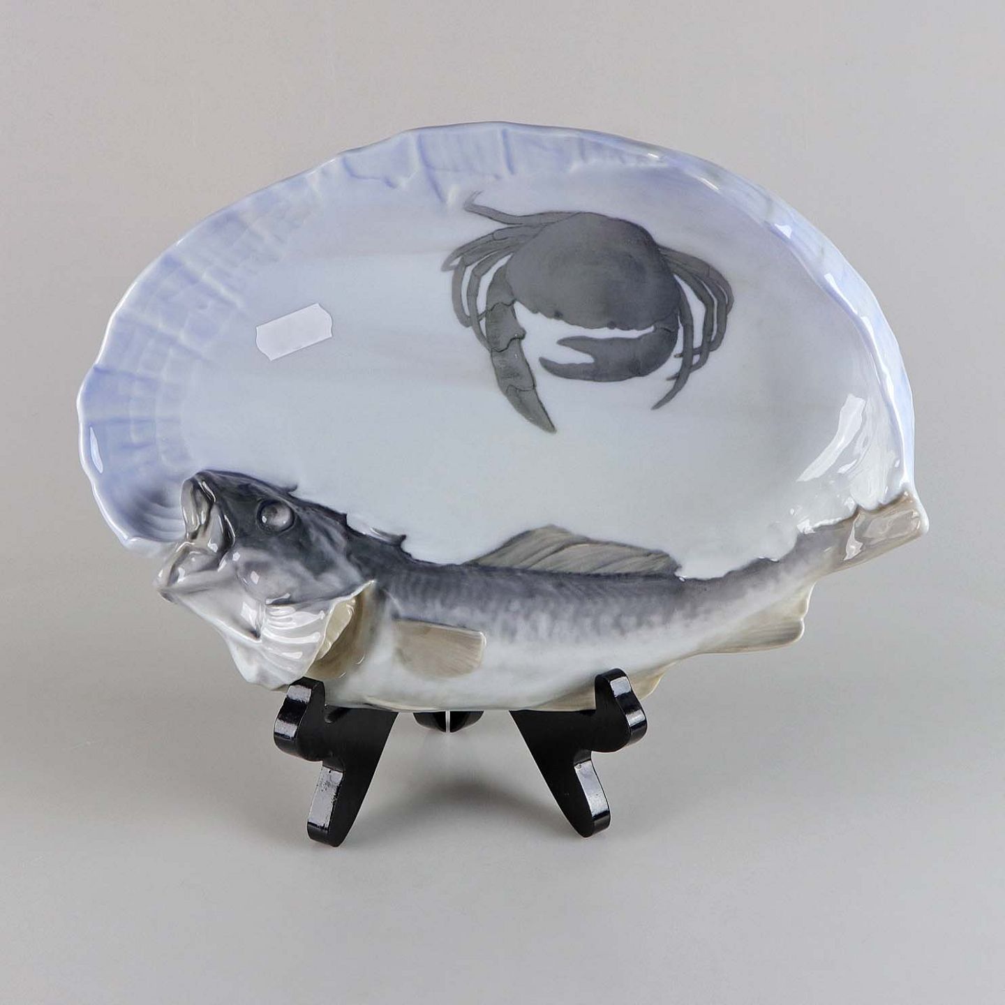 Fad i porcelæn med motiv af torsk og krabbe no 1/481