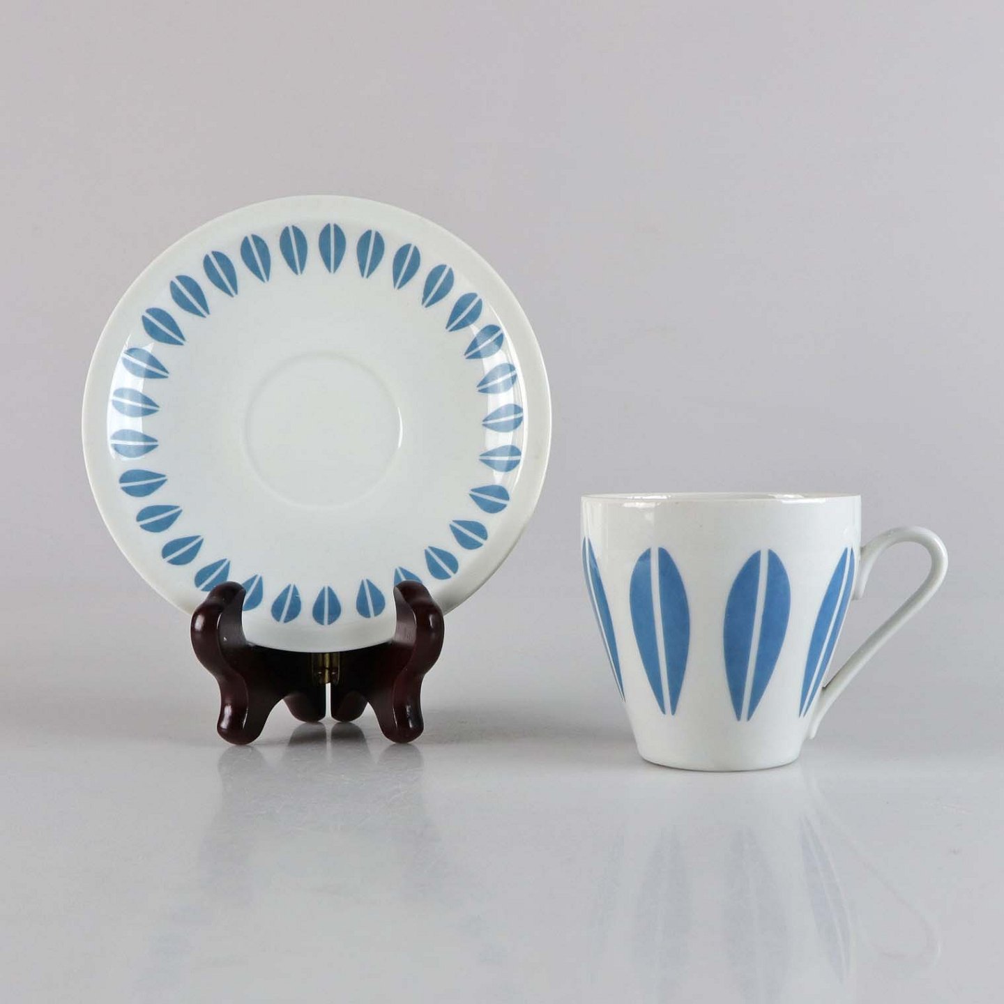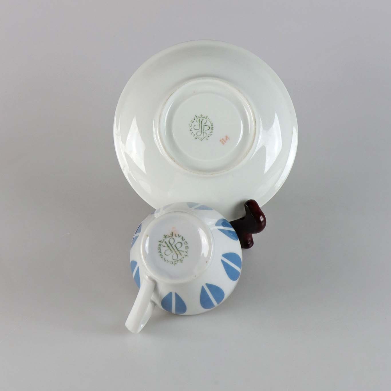 Kaffekop med underkop fra stellet Lotus med blåt motiv no 114