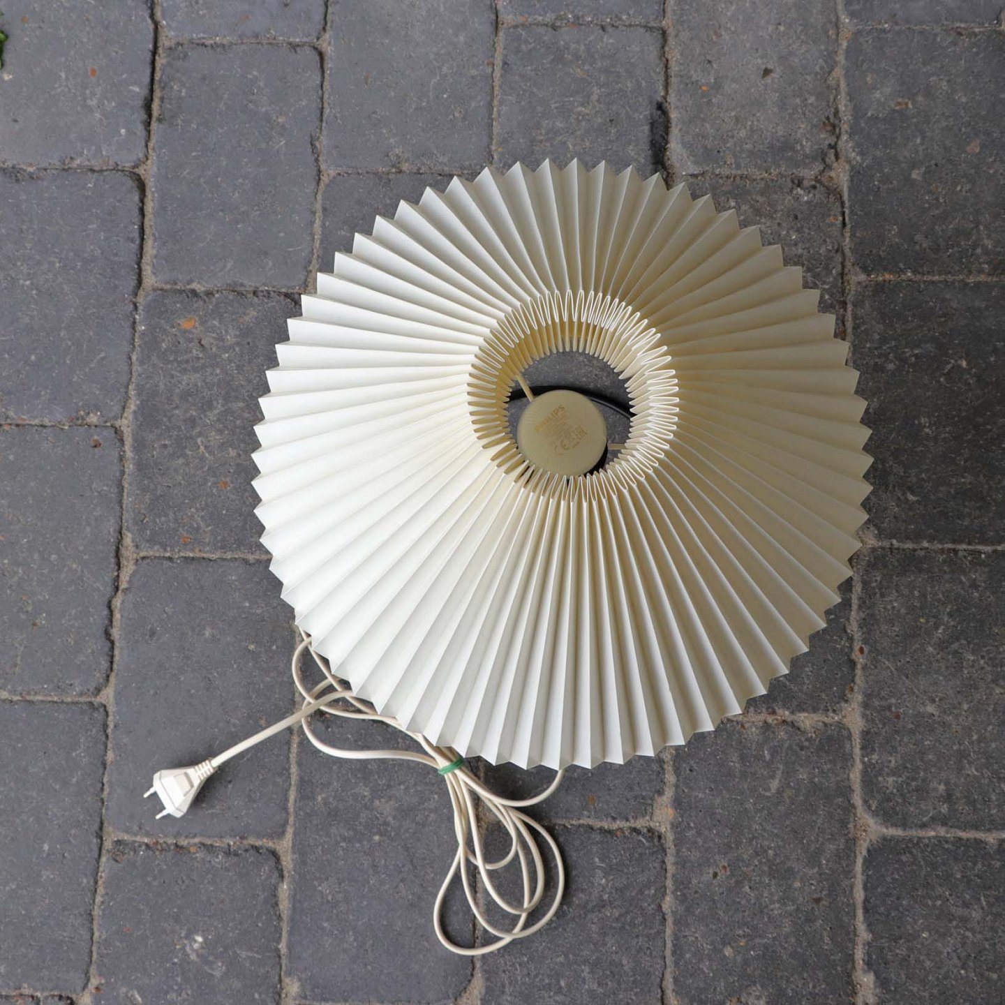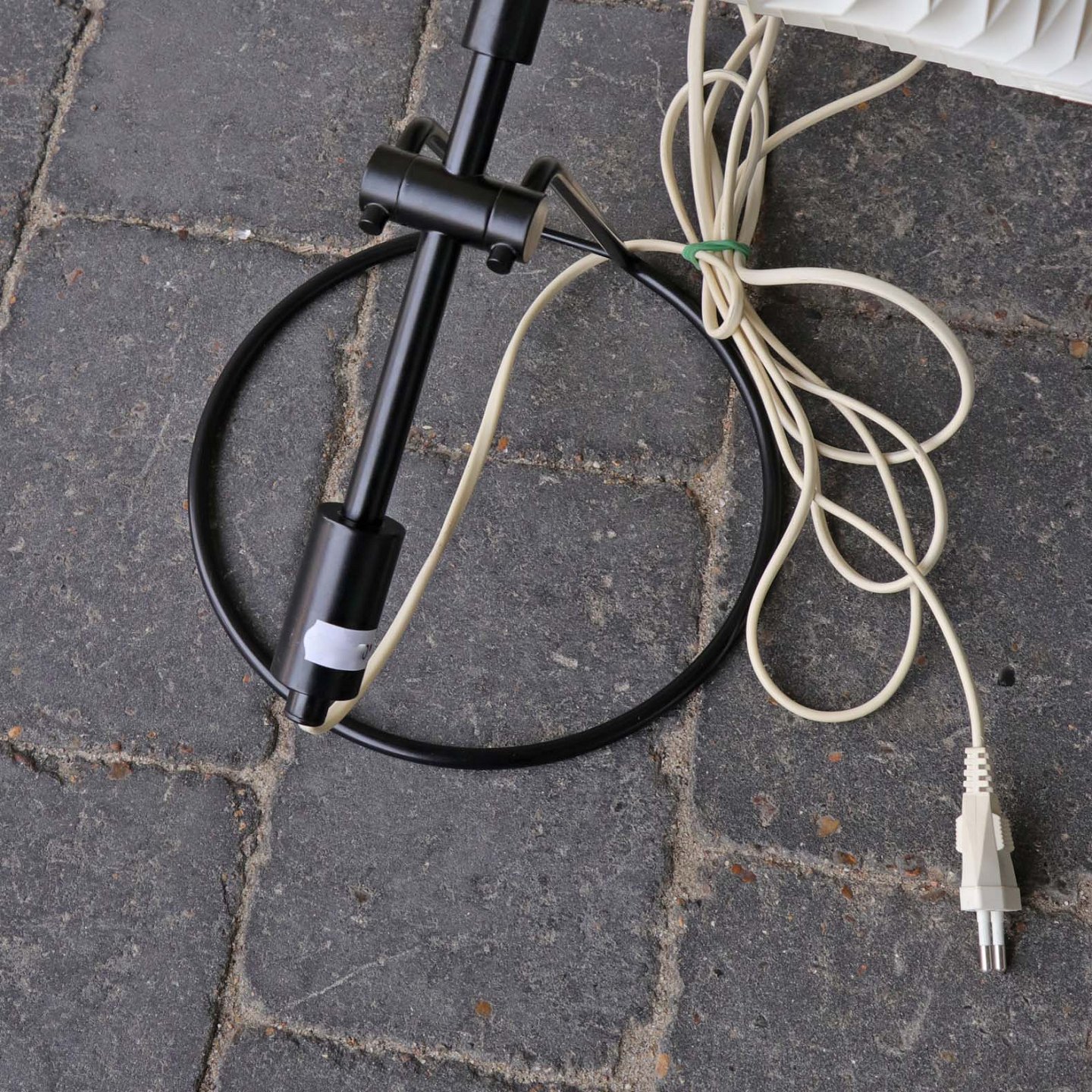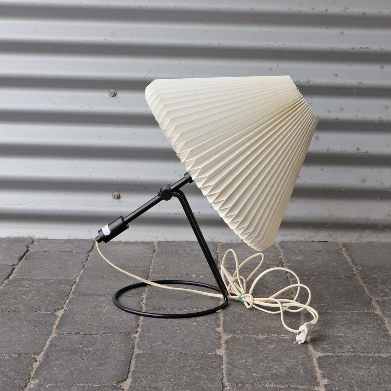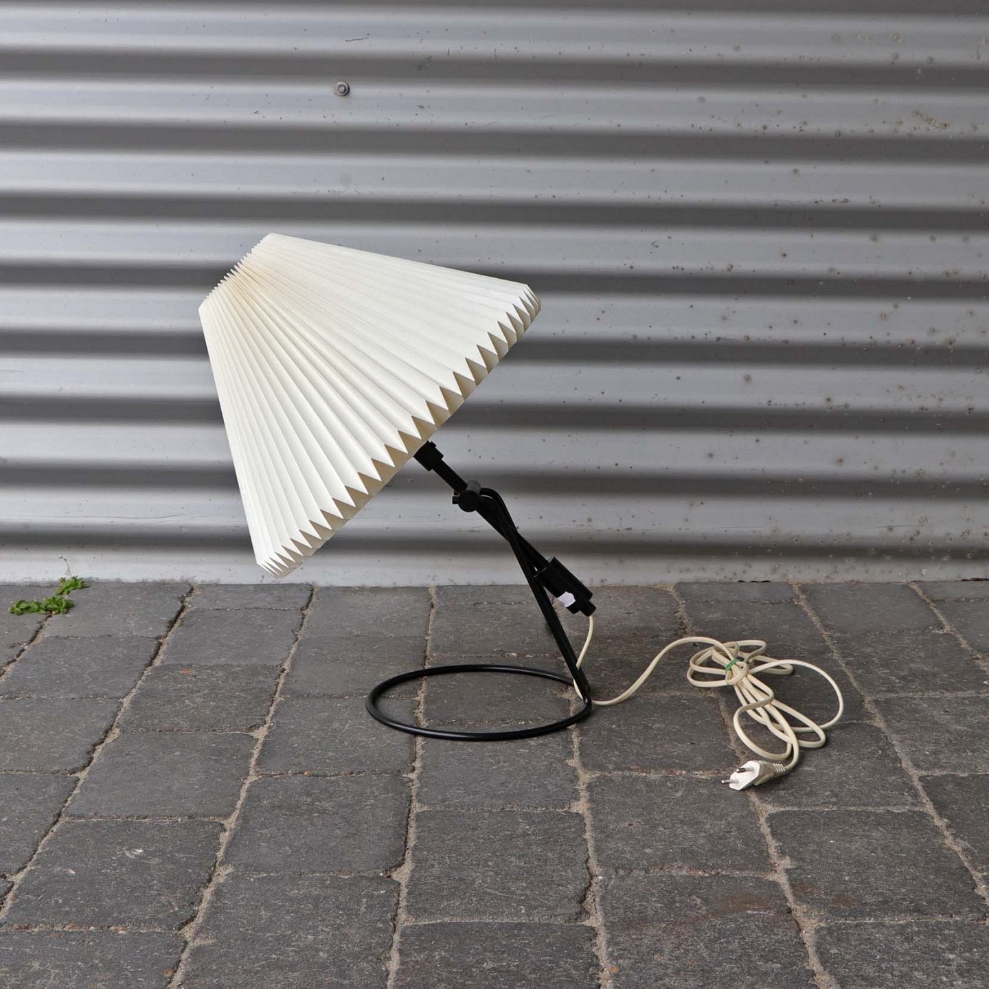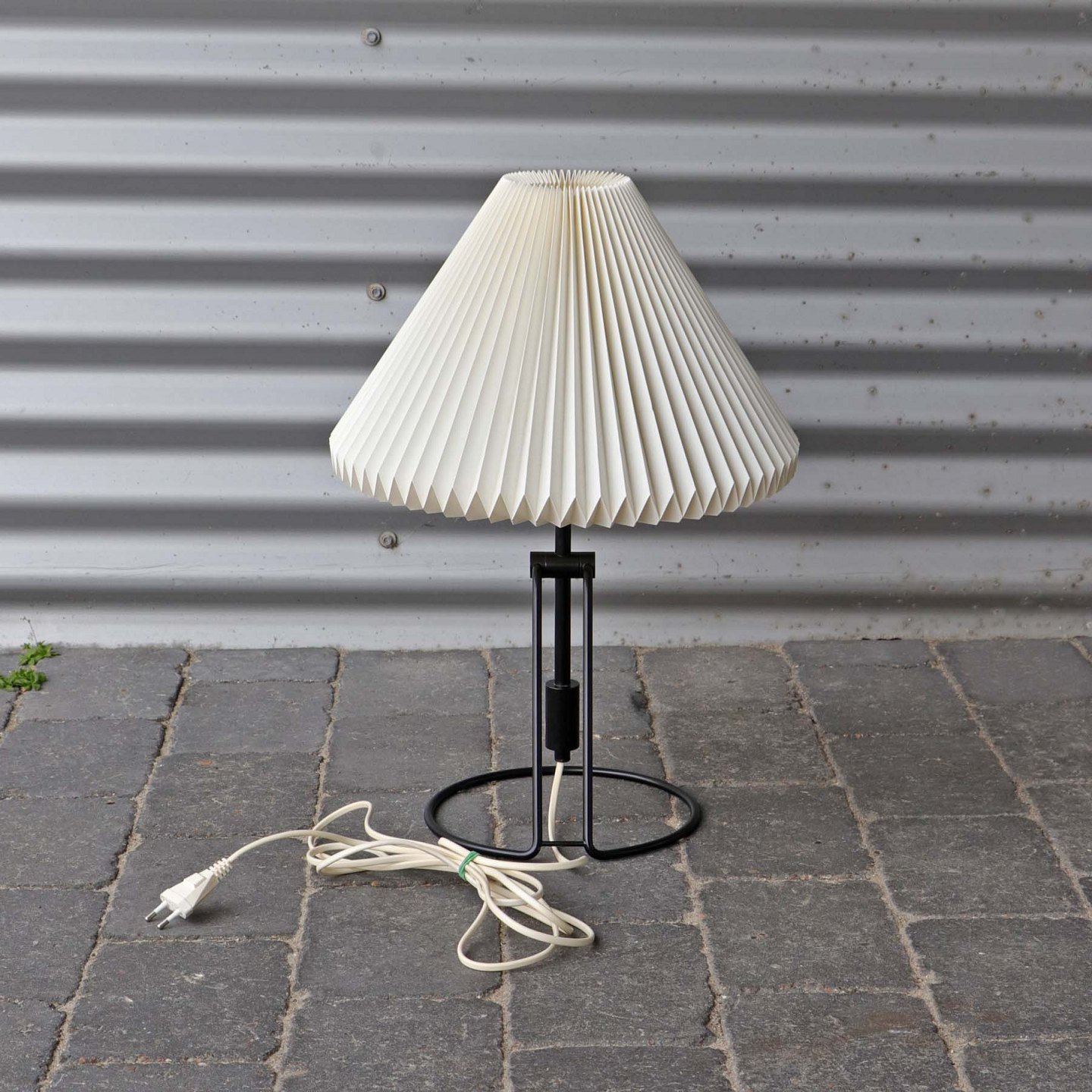 Bordlampe model 305 med sortlakeret metalfod og skærm af hvidt plast