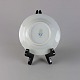 Tallerken i hvidt skælformet porcelæn med blå motiver af blomster og sommerfugle.