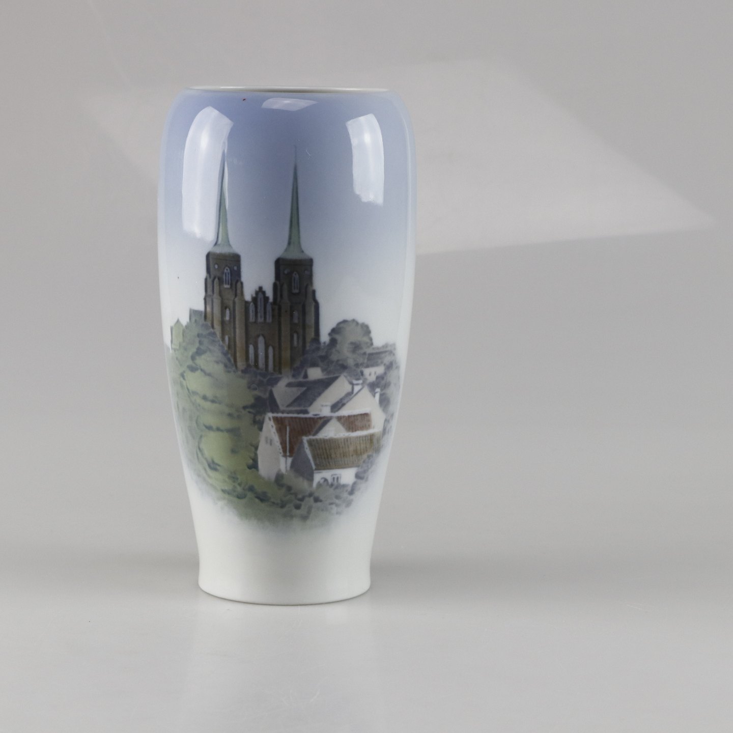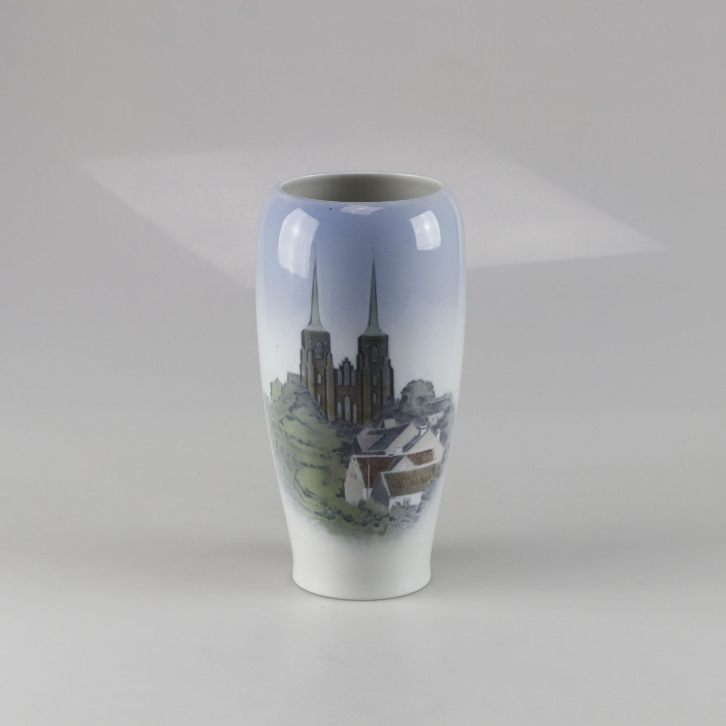 Vase i porcelæn med motiv af Roskilde Domkirke no 4557