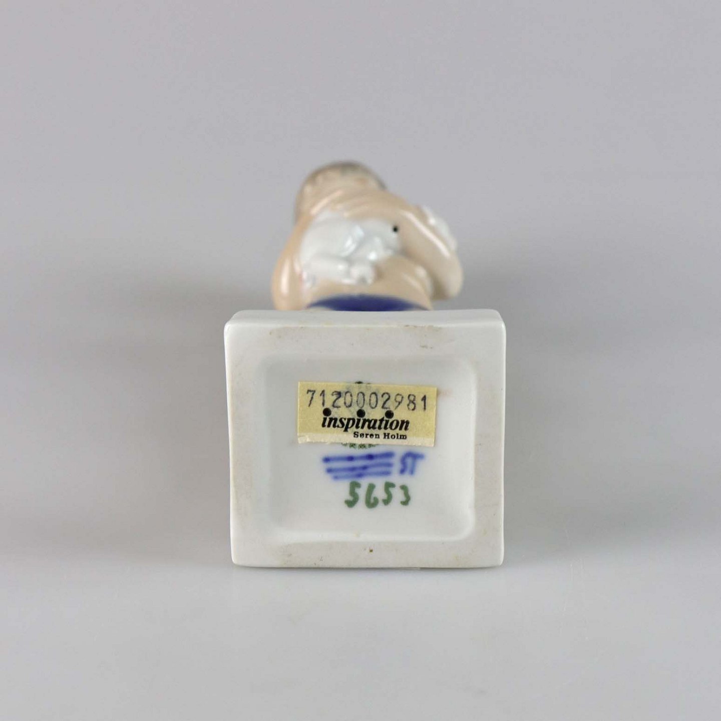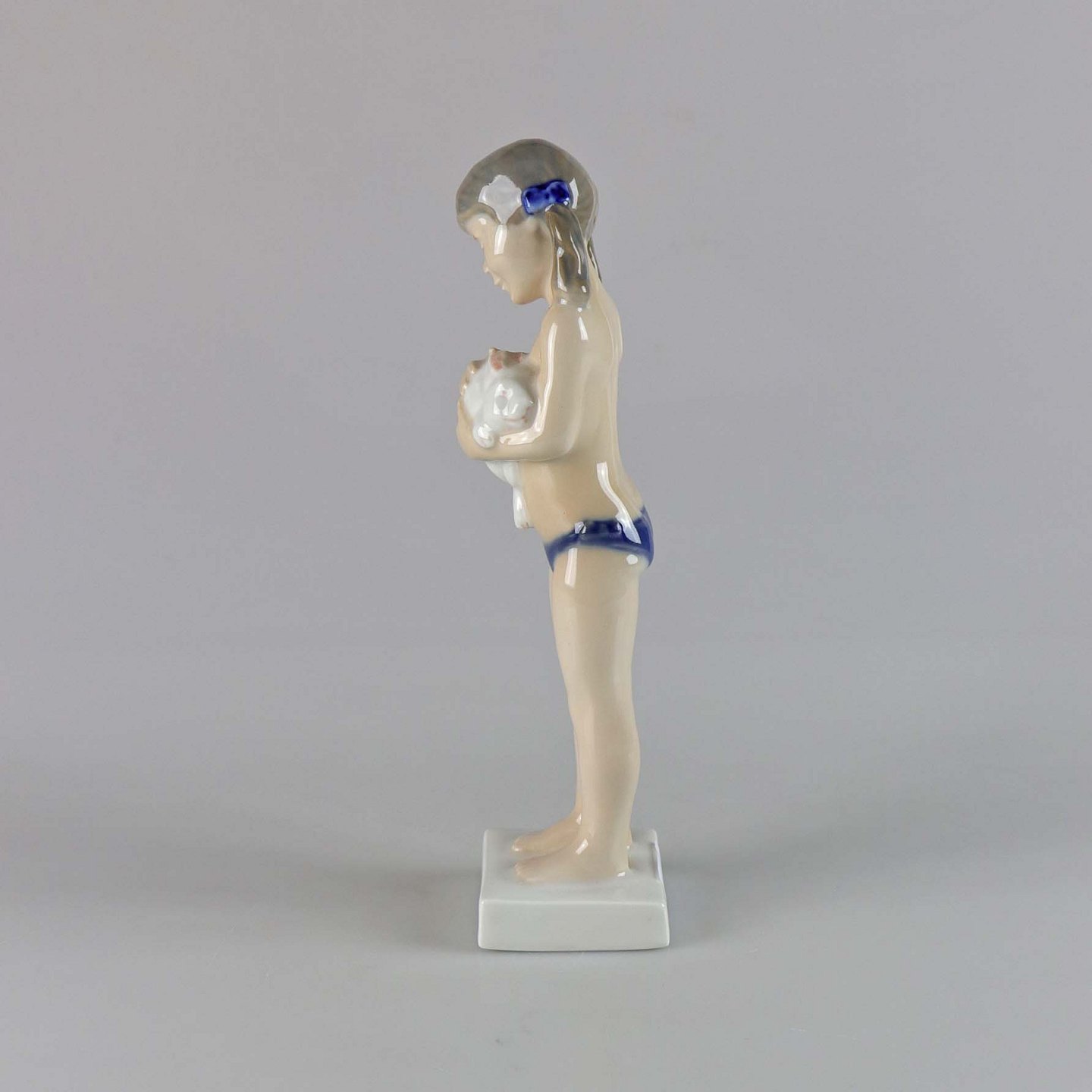 Figur i porcelæn med motiv af afklædt pige med hvid kanin no 5653