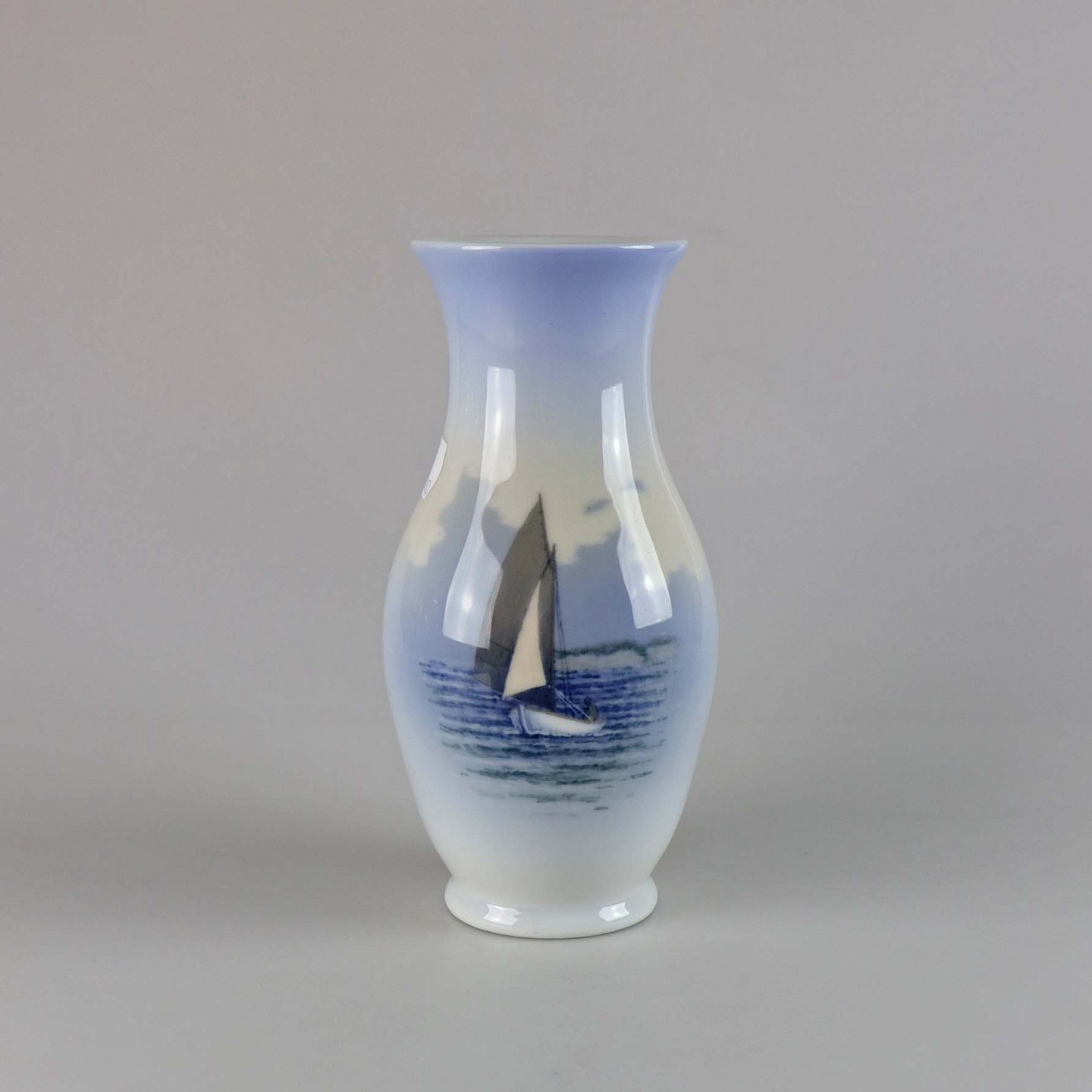 Tulipanformet vase i porcelæn med motiv af båd med sejl no 2765/2289