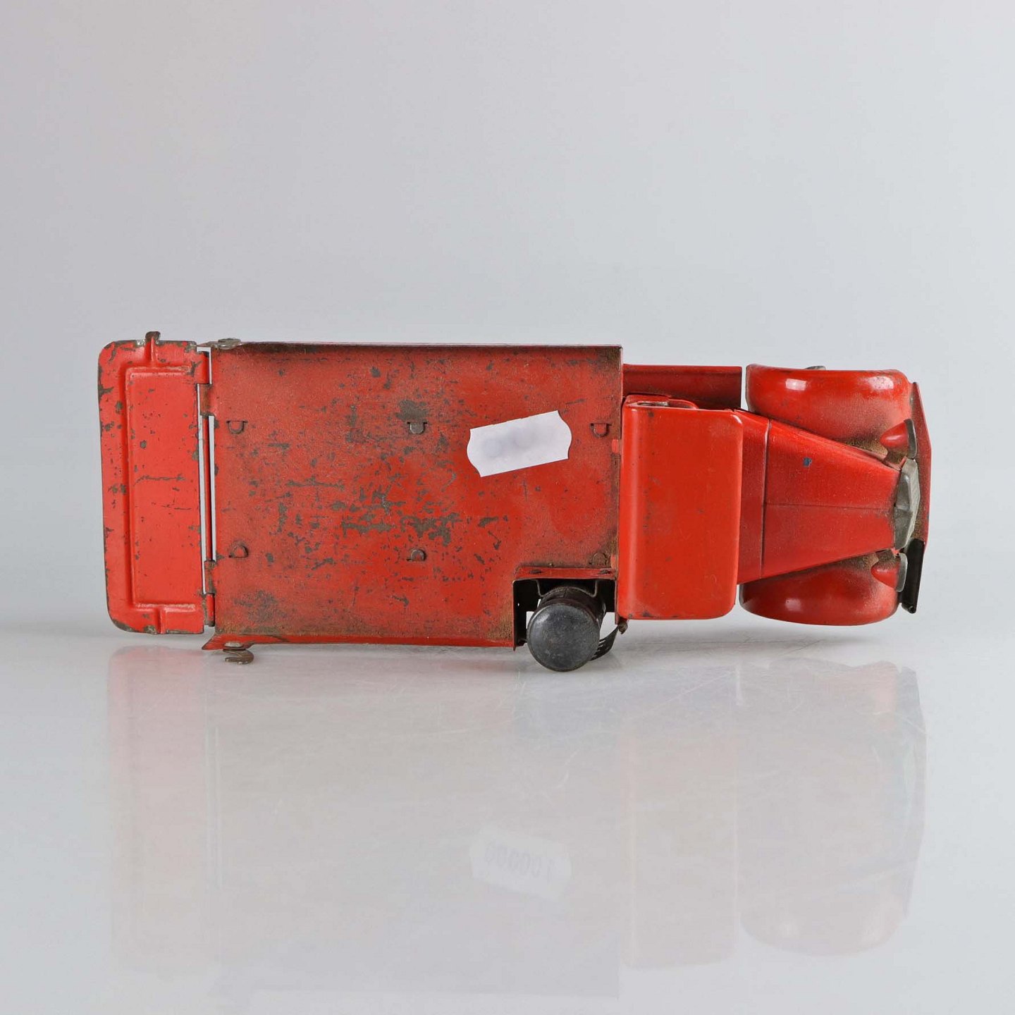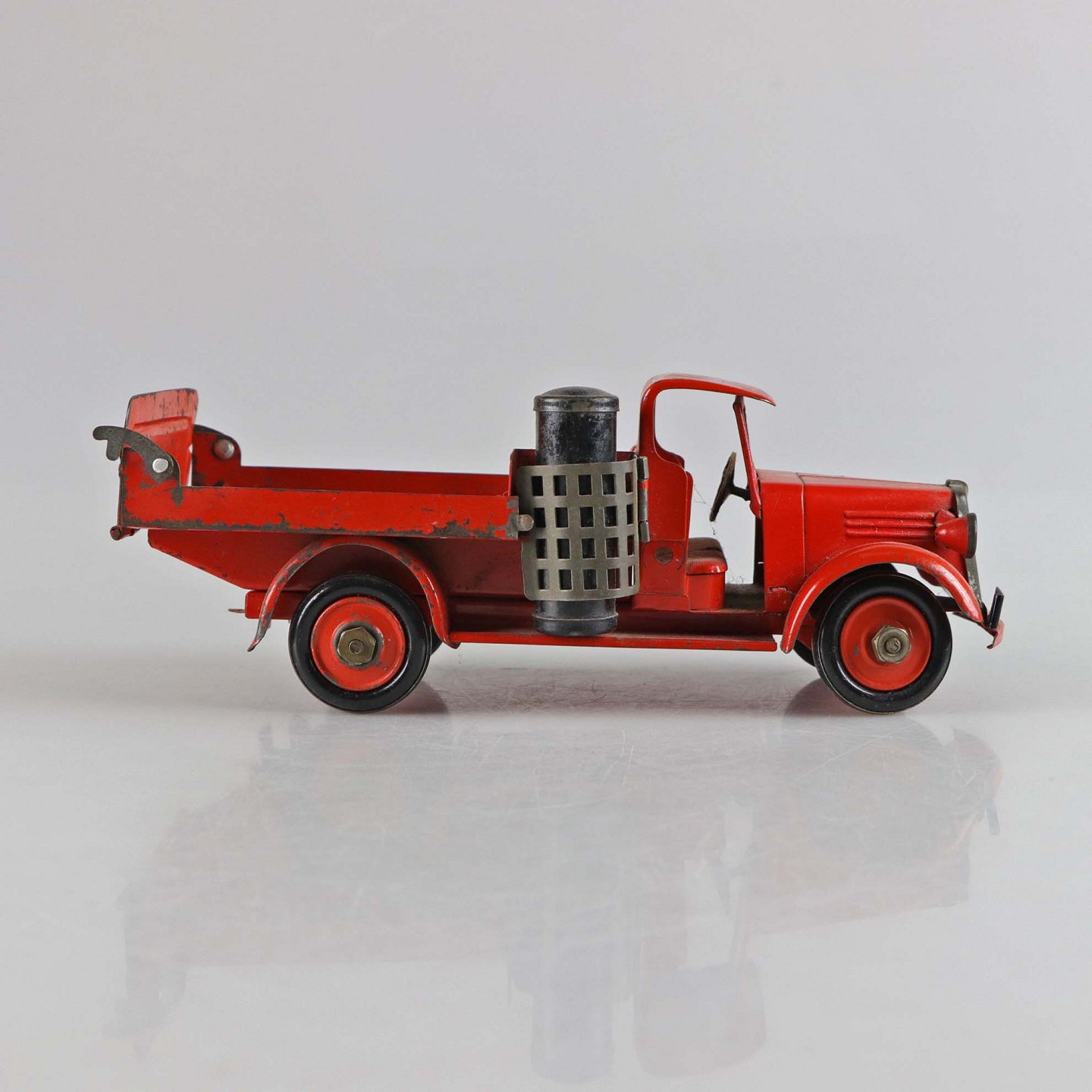Falck lastbil med lad og gasgenerator. Fremstillet i blik