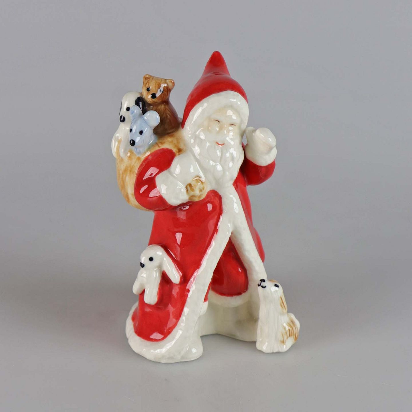 Årets Julemand i porcelæn År 2017. Julemanden med sin sæk fyldt med dyreunger