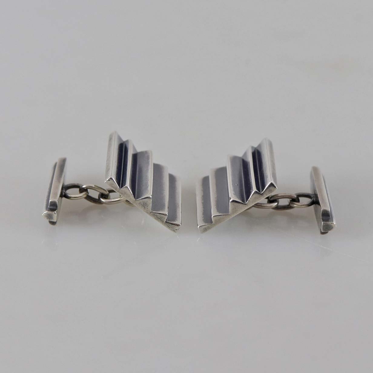 Manchetknapper i sterling sølv no 153 dekoreret med riller. I original æske