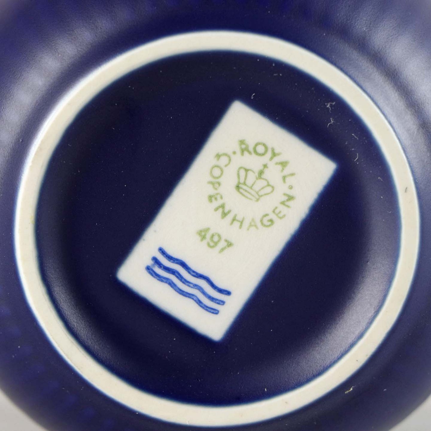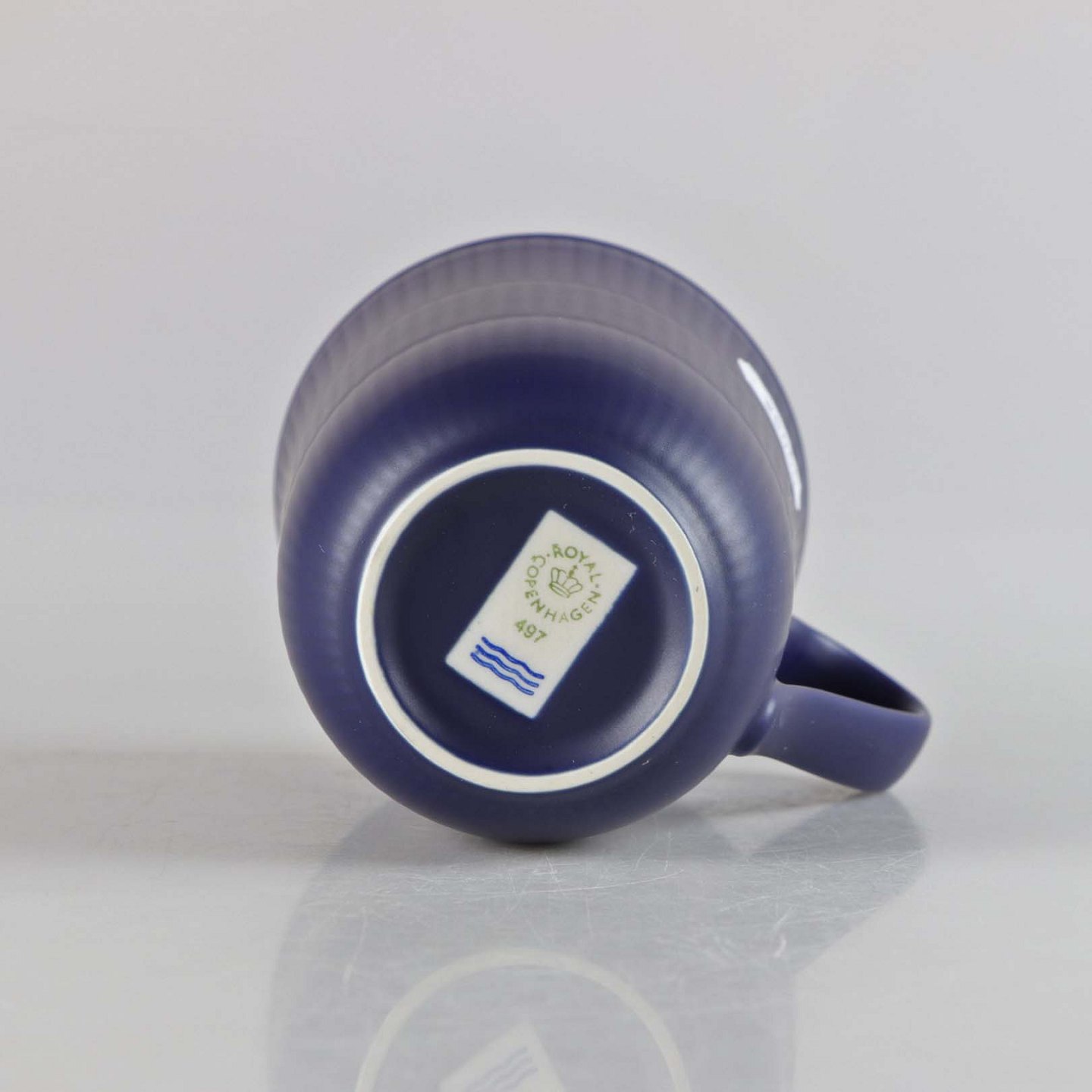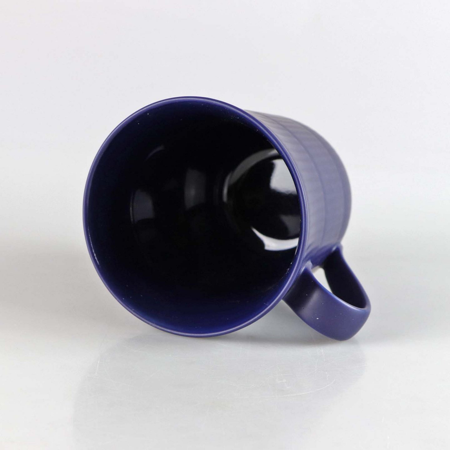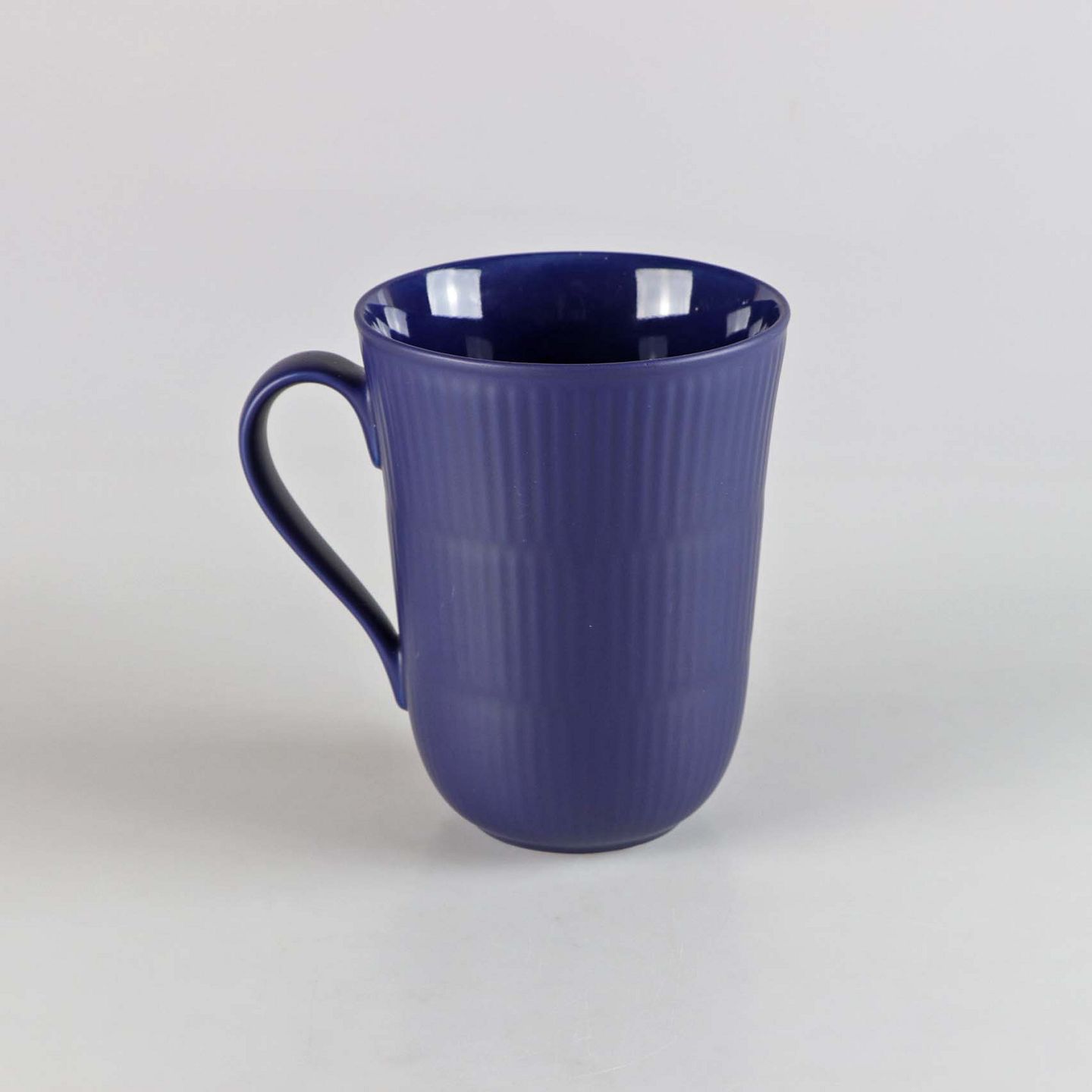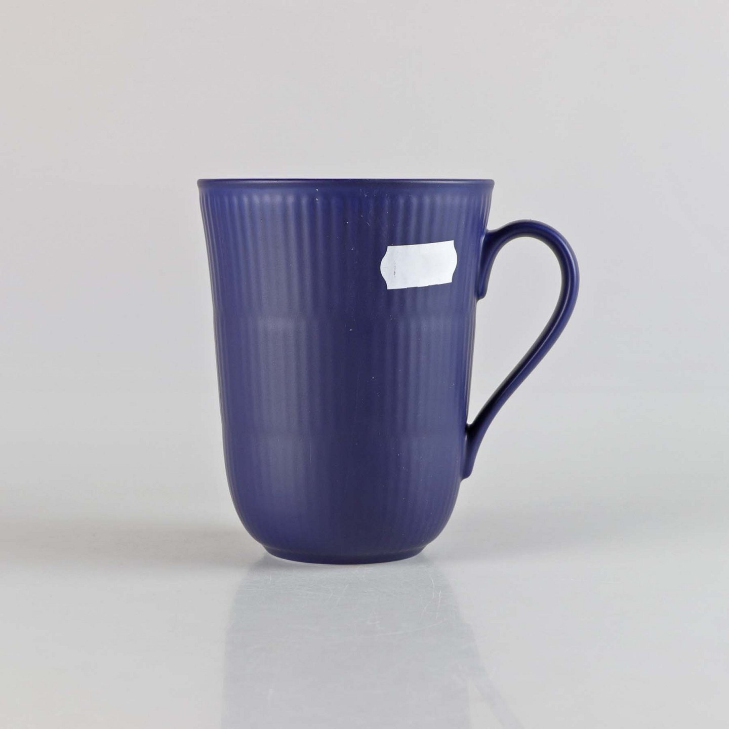 Porcelæn glaseret med blå, dekoreret med riller udenpå og glat indvendig