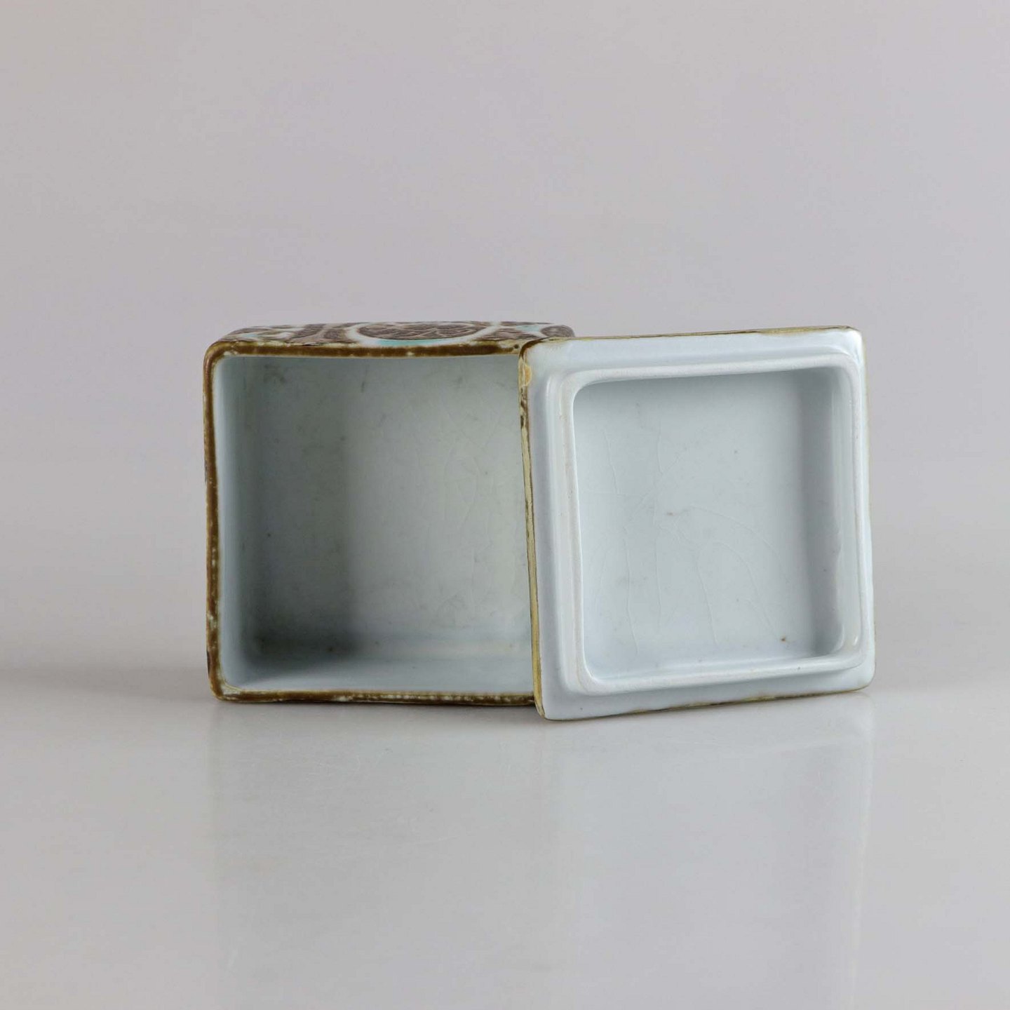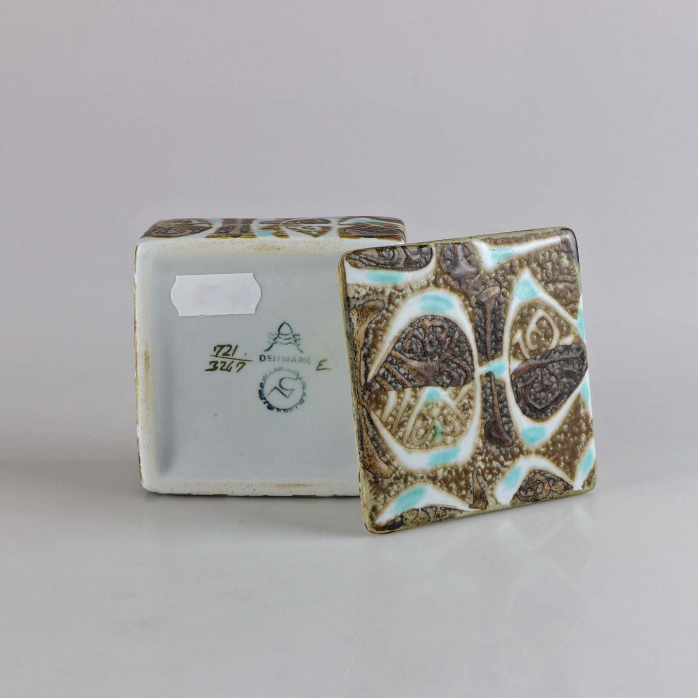 Baca æske med låg i brun og grønlig fajance no 721/3267