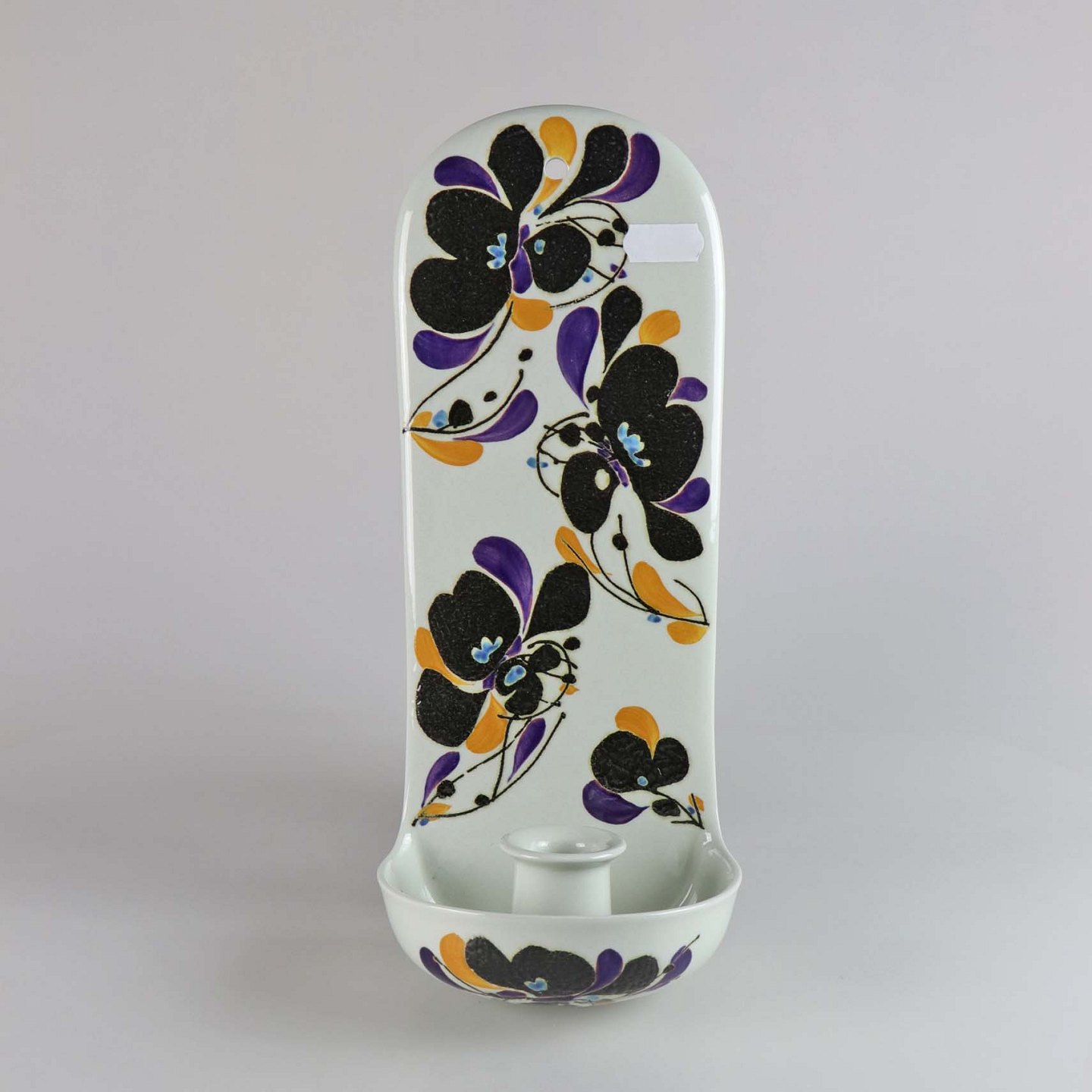 Væghængt lysestage i fajance i lilla, mørke og gyldne farver no 954/3786
